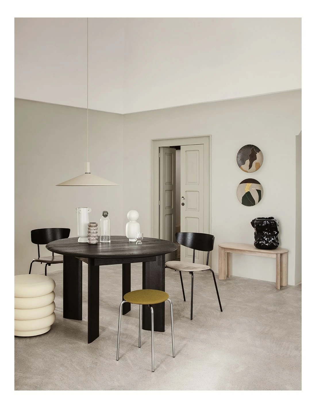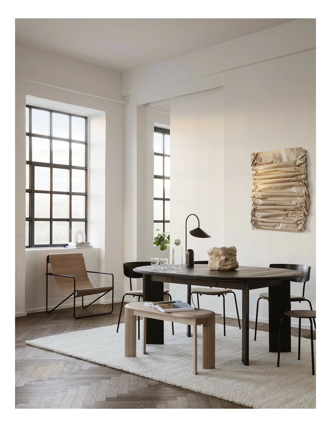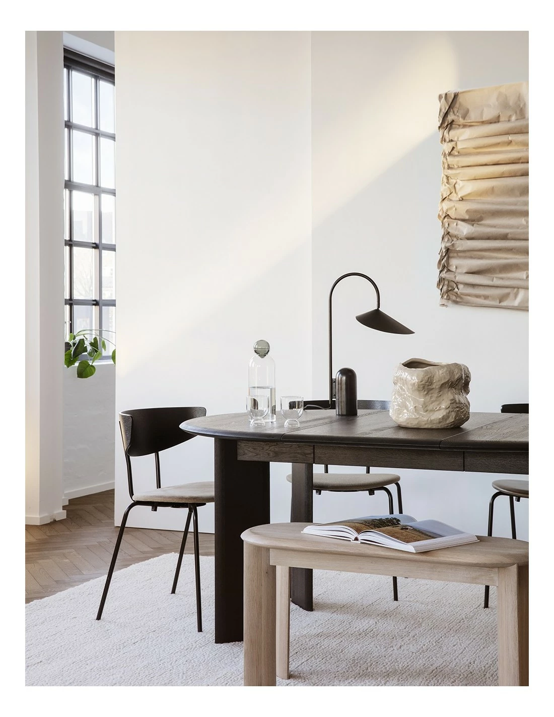 Banco de Ferm Living realizada en roble macizo con bordes y patas redondeadas