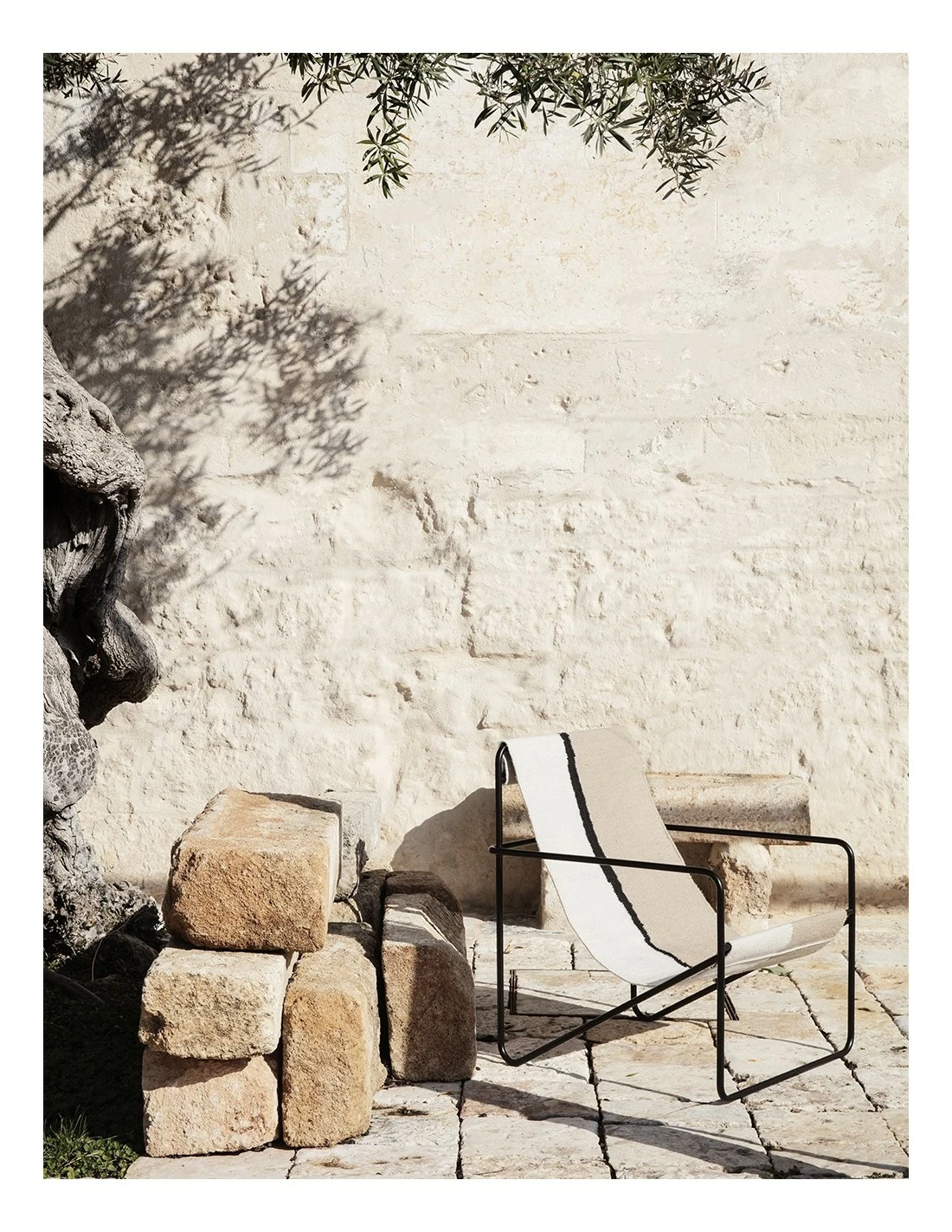 Desert Lounge Chair de Ferm Living es una butaca arquitectónica apta para interior y exterior con diferentes diseños. Escoge tu combinación.
