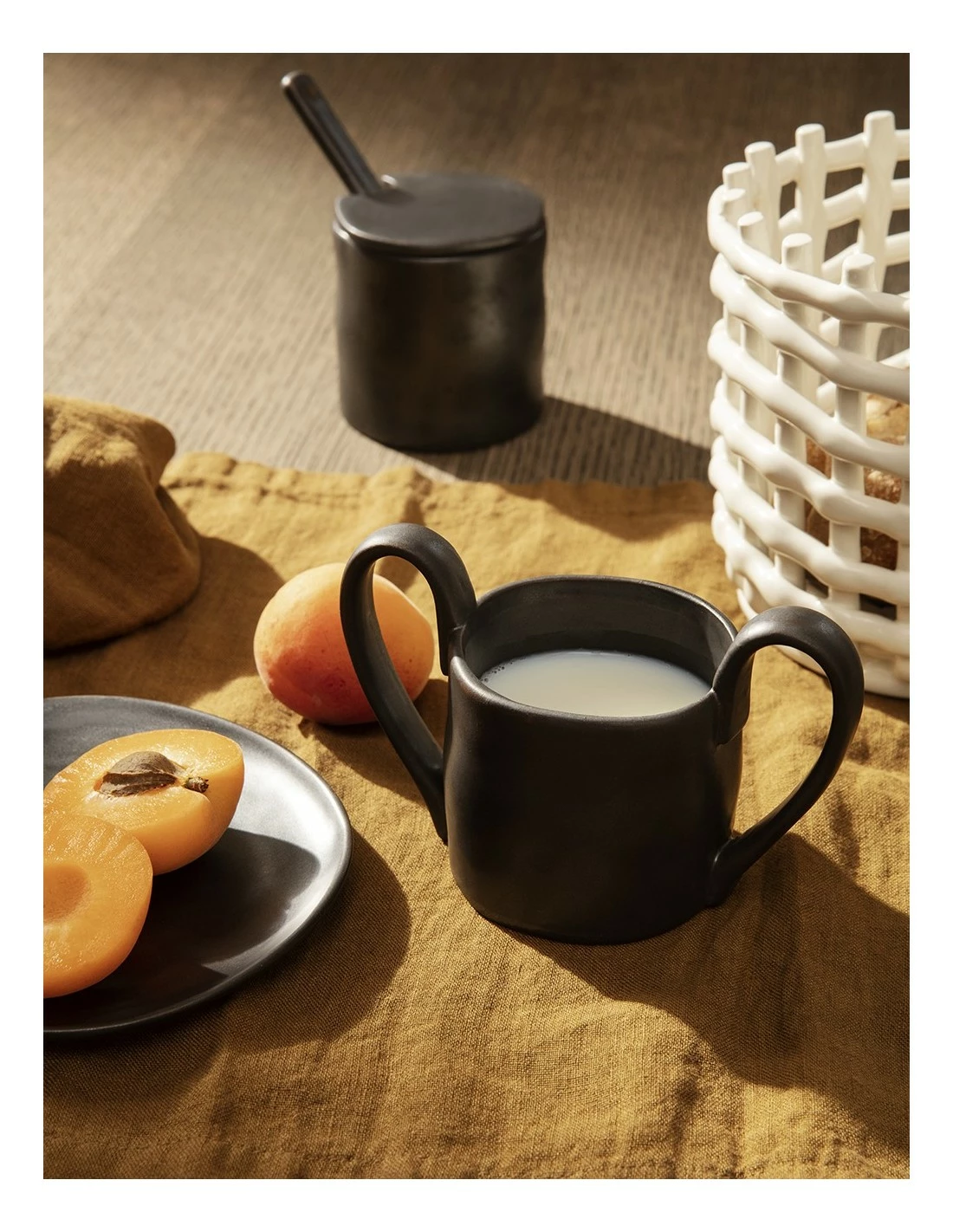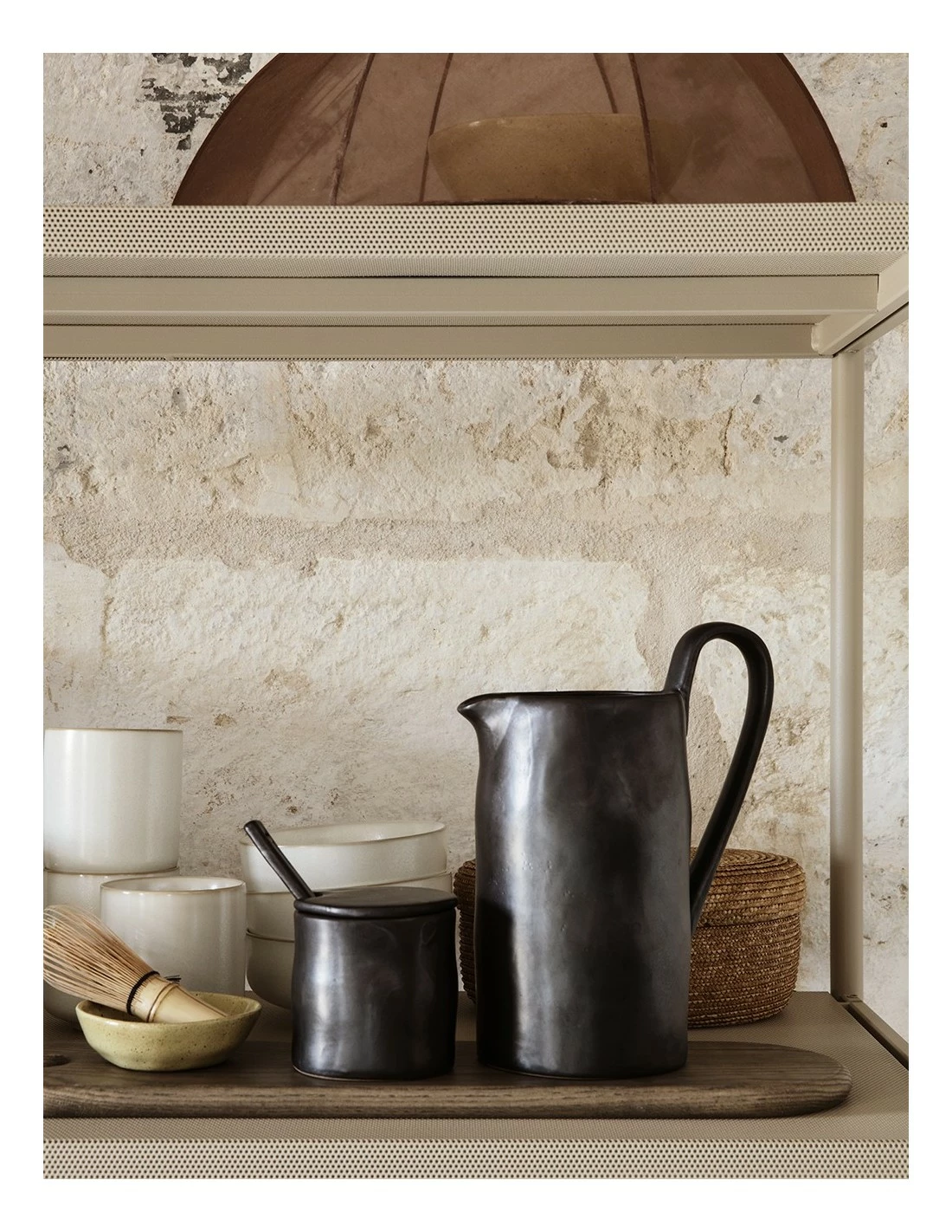 Vajilla de porcelana de la marca Ferm Living con diseño irregular.