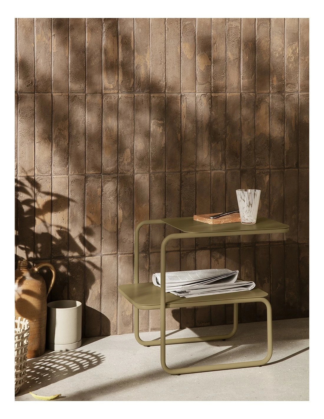 Mesa auxiliar de estilo arquitectónico apta para su uso tanto en exterior como en interior.