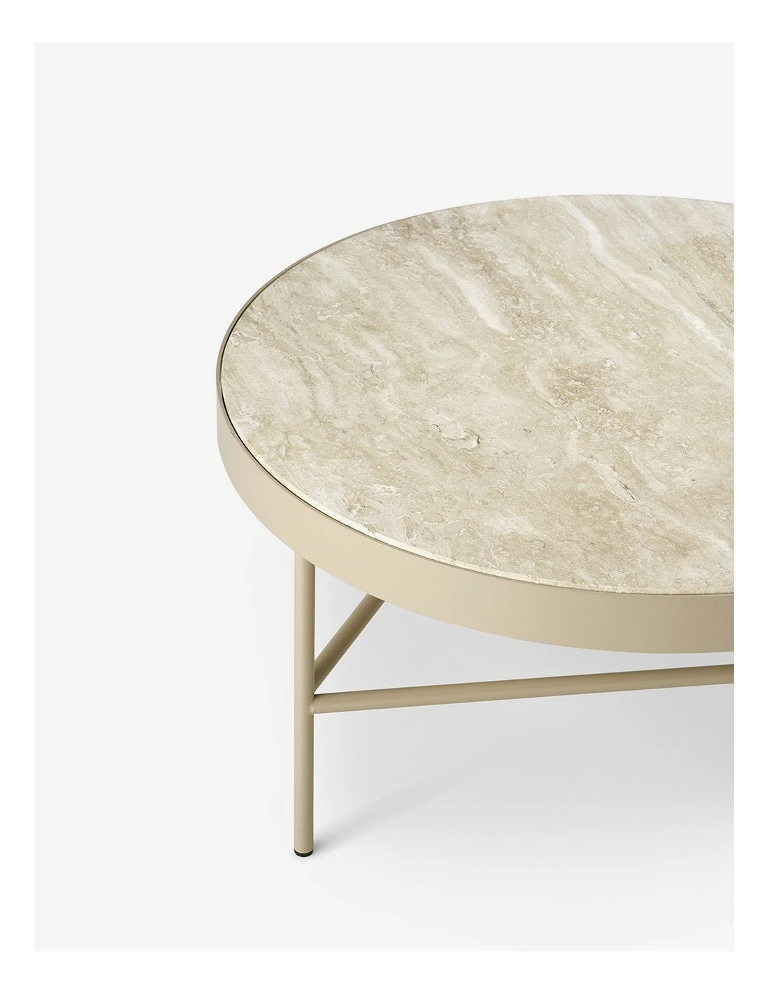 Mesa de mármol y metal de Ferm Living. El diseño minimalista y ligero de la estructura contrasta con una pieza solida de mármol creando dramatismo.