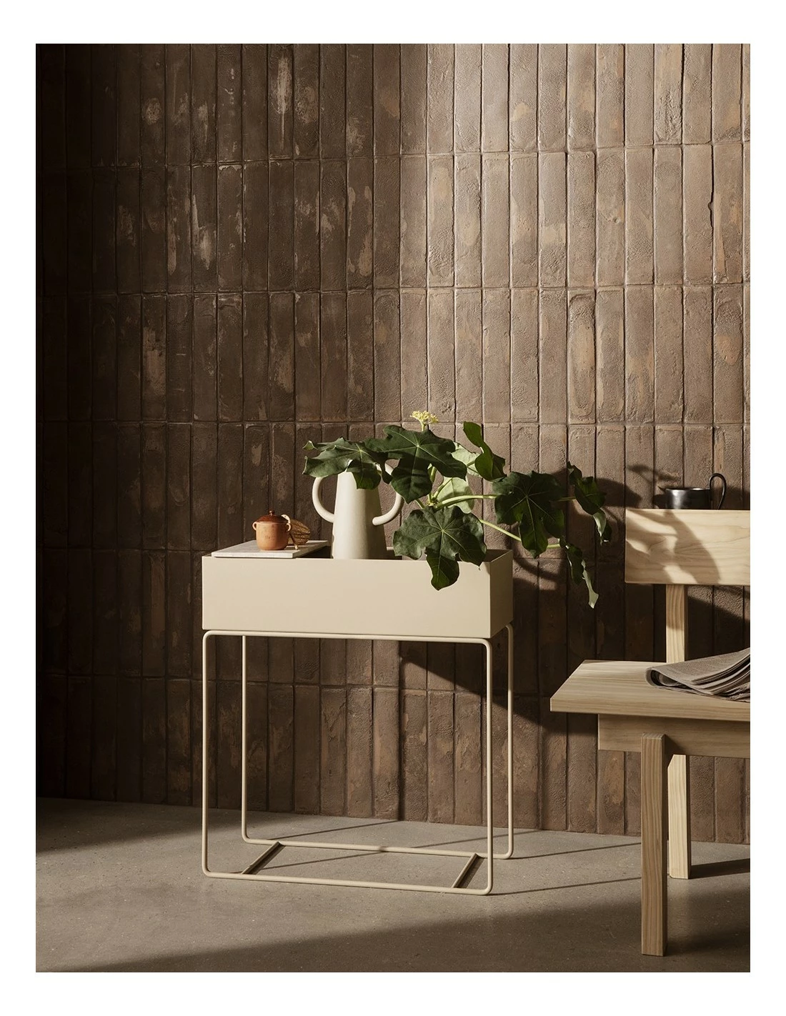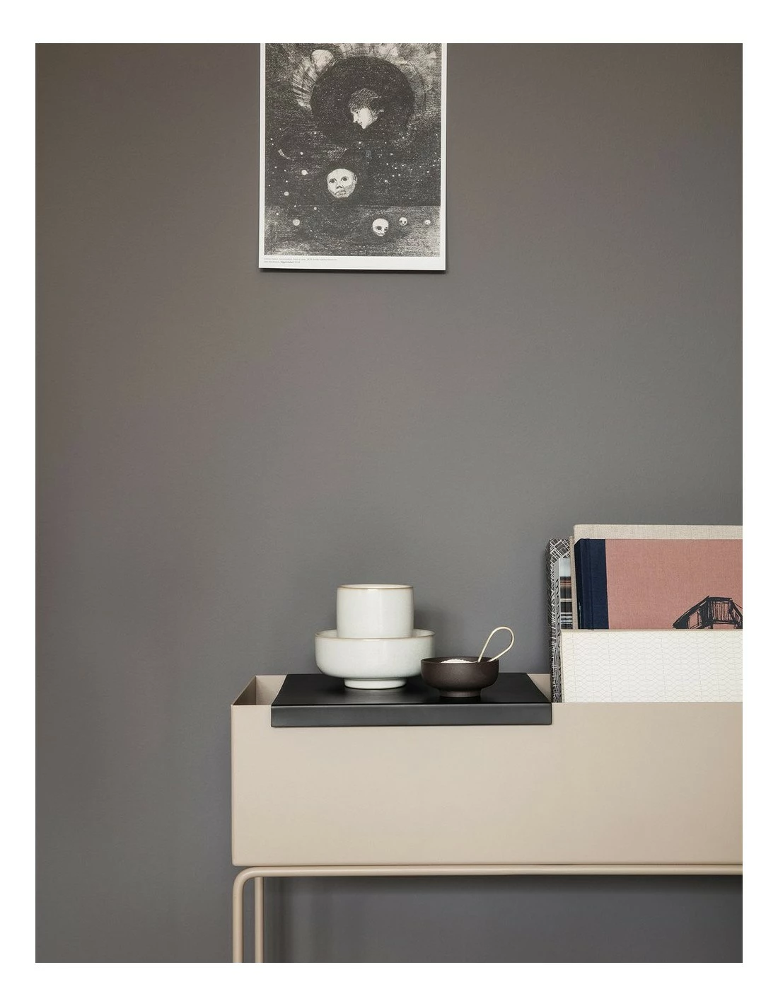 Mueble auxiliar de diseño conceptual compuesto de un cajón sobre estructura metálica.