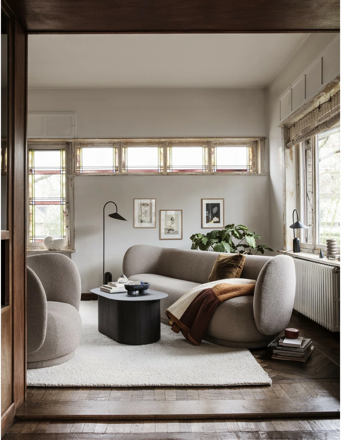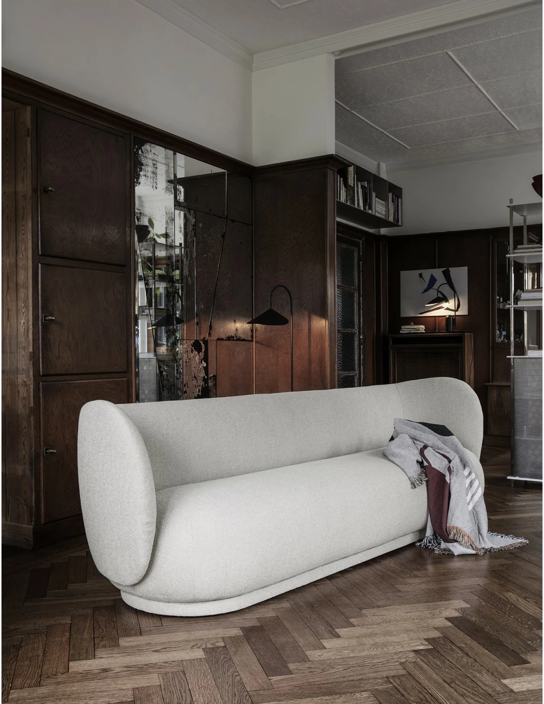 Sofá de tres plazas tapizado en Bouclé de Ferm Living. Rico Sofa está diseñado para proporcionar máxima comodidad.