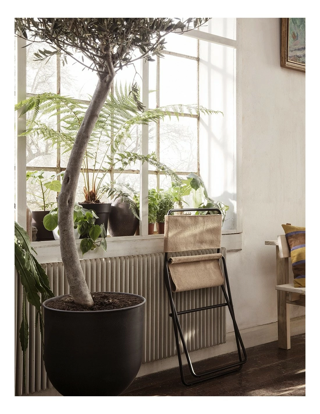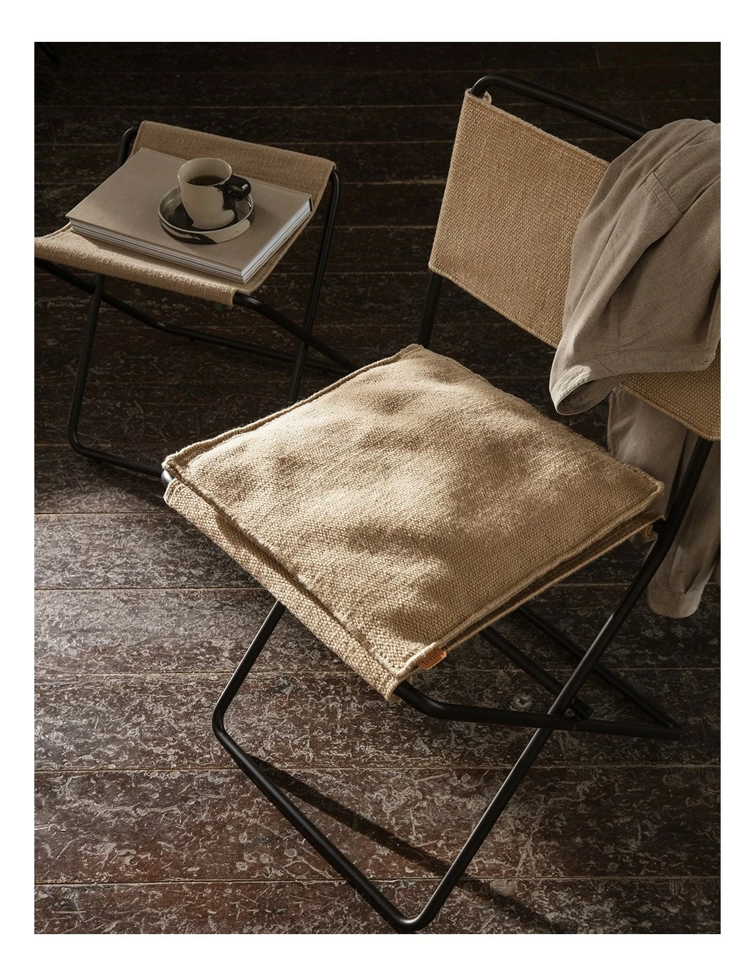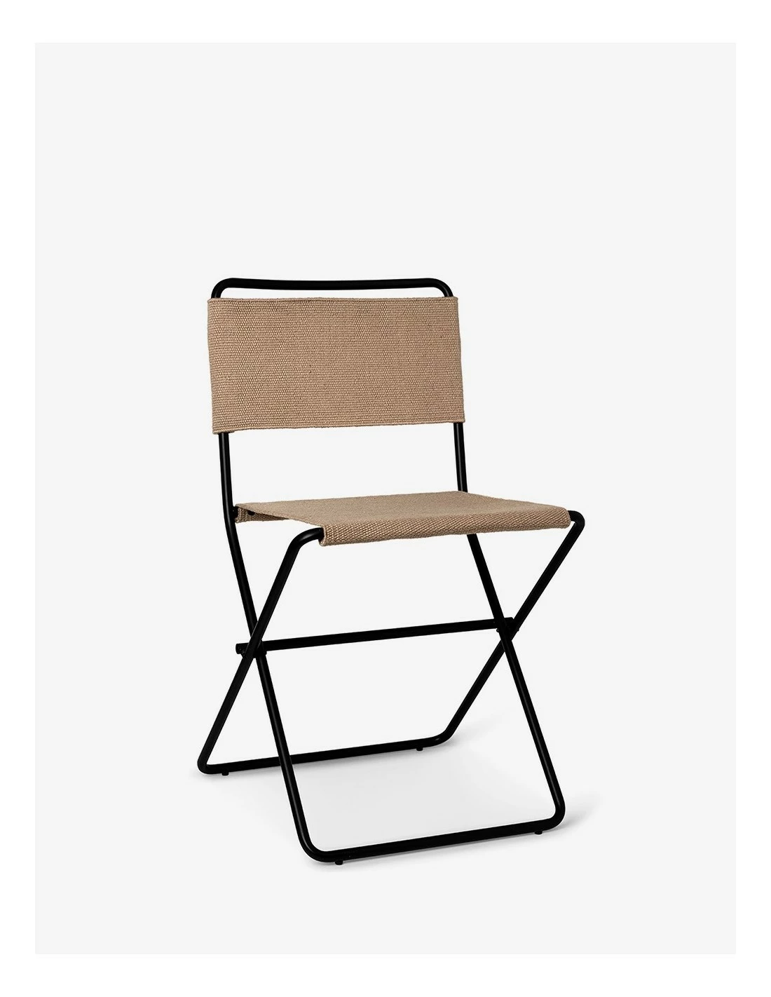 Silla plegable con diseños étnicos realizado con plástico reciclado y producido por Ferm living