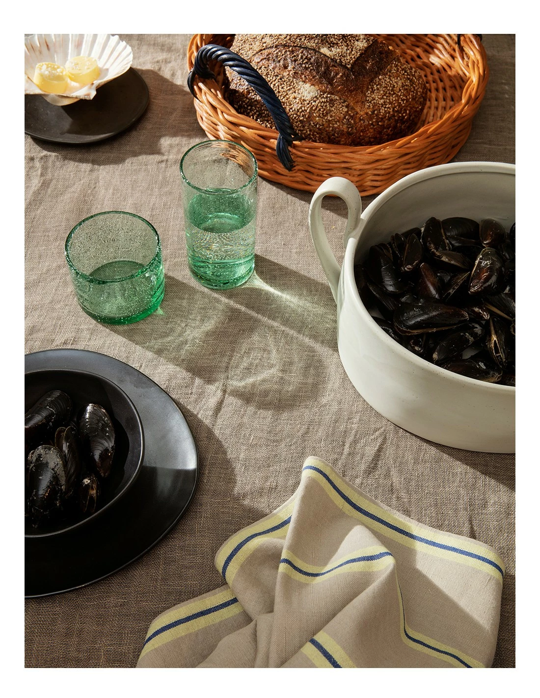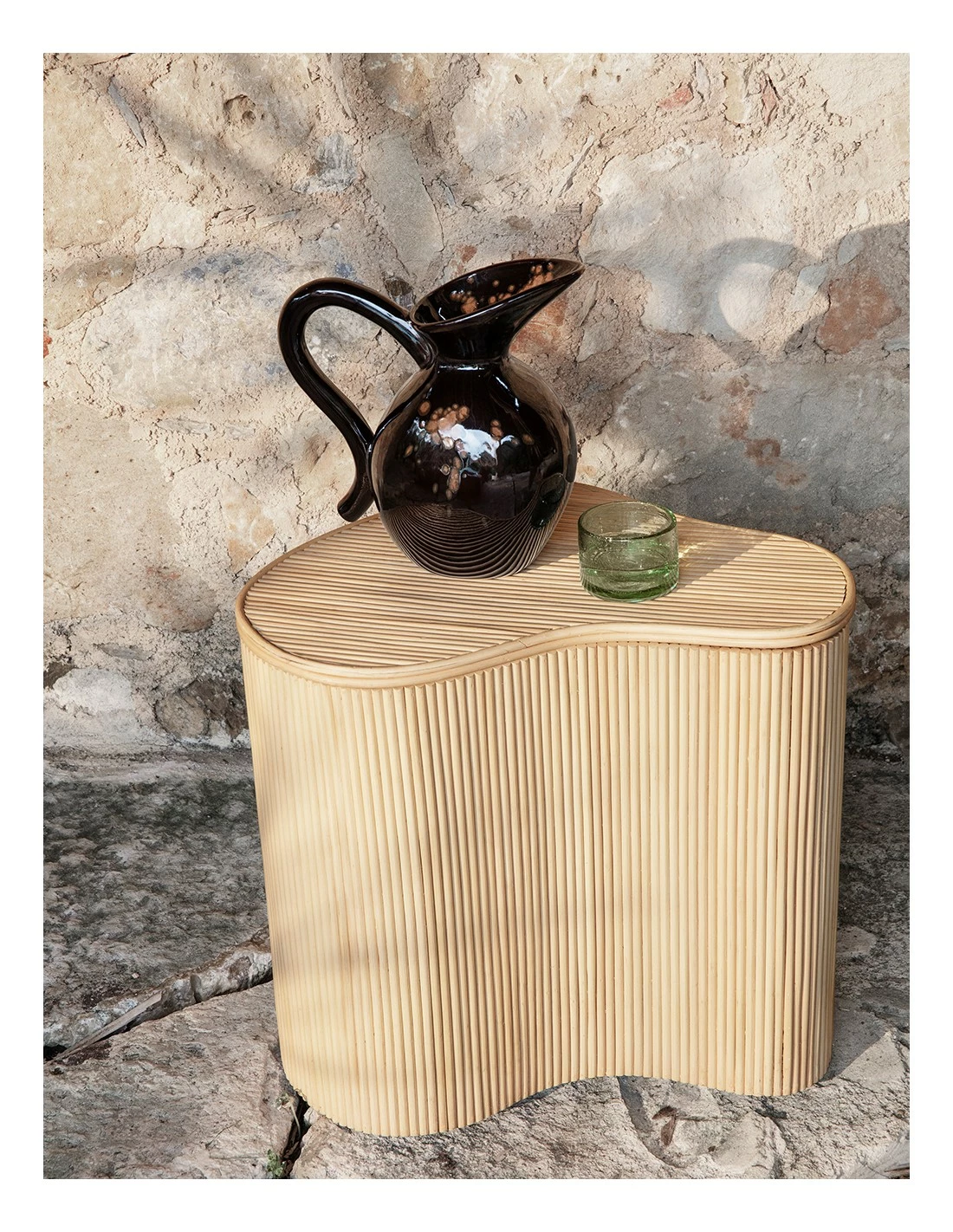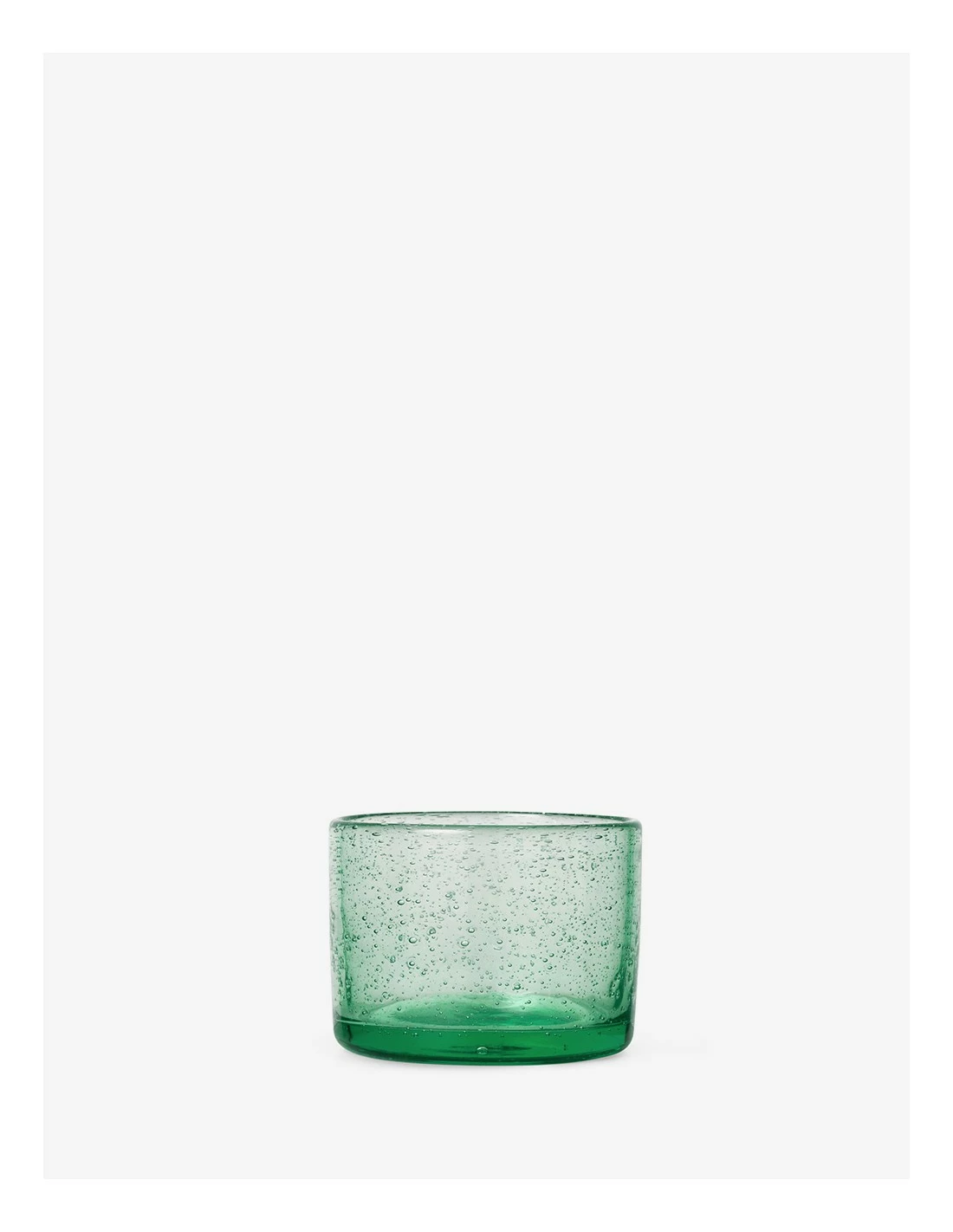 Cada pieza se realiza en vidrio reciclado con un acabado de burbujas diminutas que se crea mediante bolsas de aire entre las diferentes capas del vidrio.