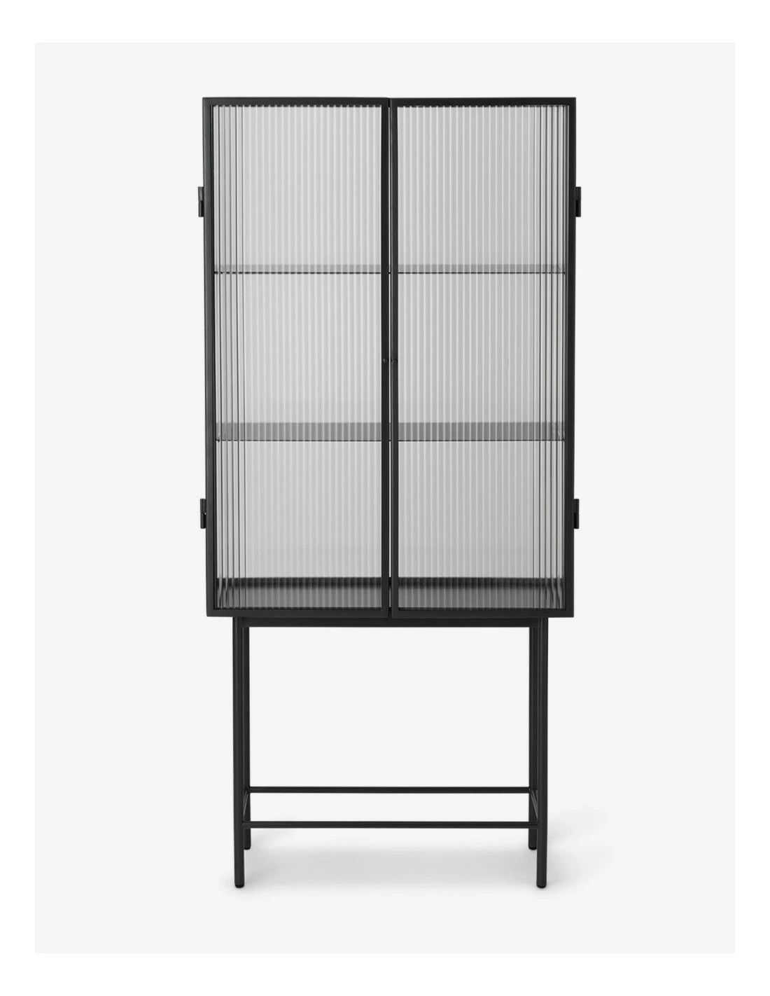 Vitrina de metal lacado y vidrio acanalado de Ferm Living. Haze Vitrine es el mueble perfecto para almacenamiento de menaje o mueble auxiliar en el baño.