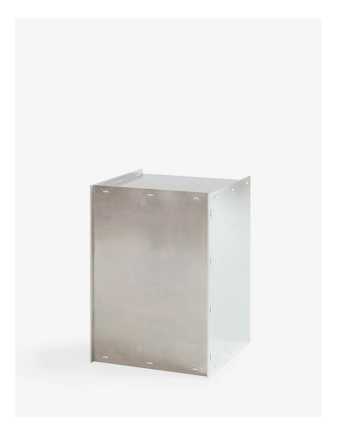 Rivet, diseñado por Jonas Trampedach para FRAMA, está compuesto por una serie de muebles de almacenamiento, y auxiliares, realizados en aluminio no tratado.
