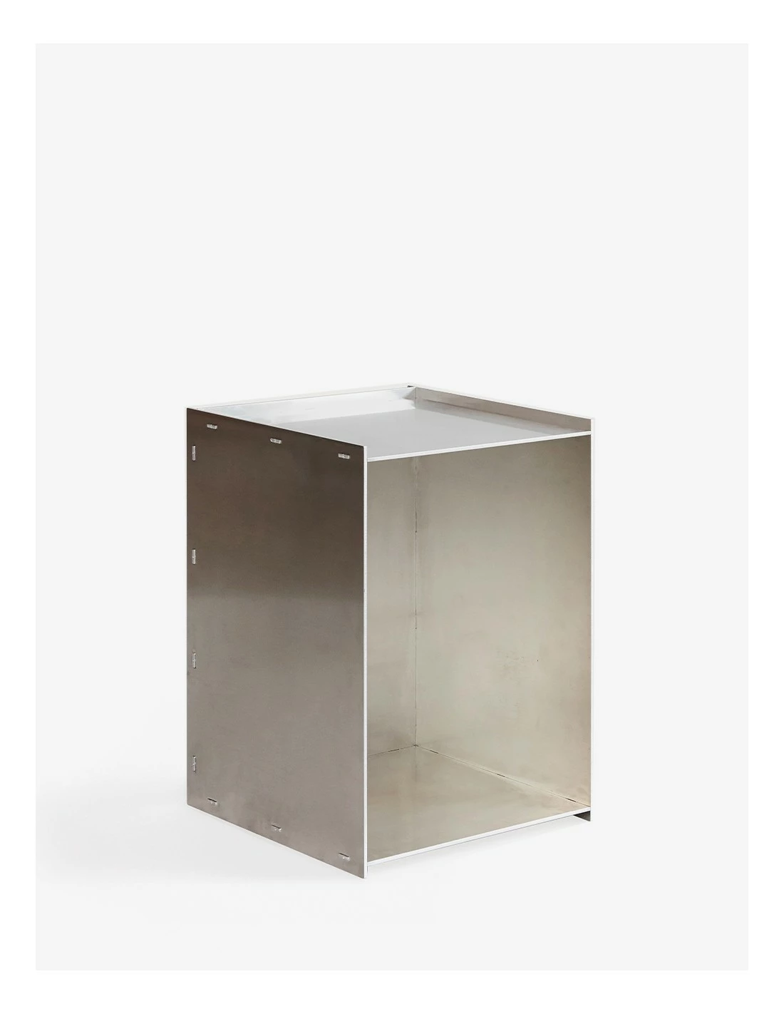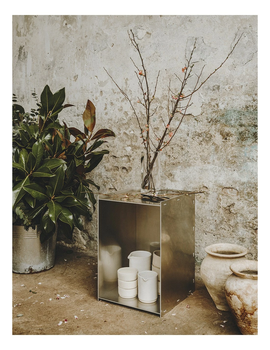 Rivet, diseñado por Jonas Trampedach para FRAMA, está compuesto por una serie de muebles de almacenamiento, y auxiliares, realizados en aluminio no tratado.