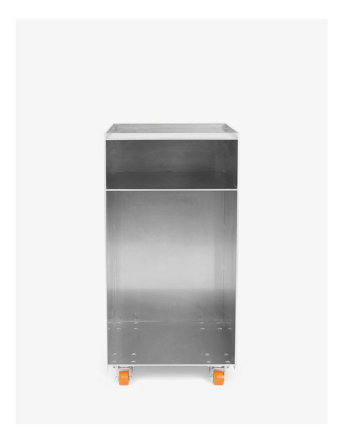 Rivet, diseñado por Jonas Trampedach para FRAMA, está compuesto por una serie de muebles de almacenamiento, y auxiliares, realizados en aluminio no tratado.