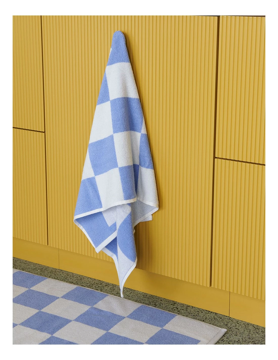 Confeccionada en algodón OEKO-TEX con una textura frotté, la serie Check, es una gama de artículos para el baño que presenta un colorido diseño a cuadros.