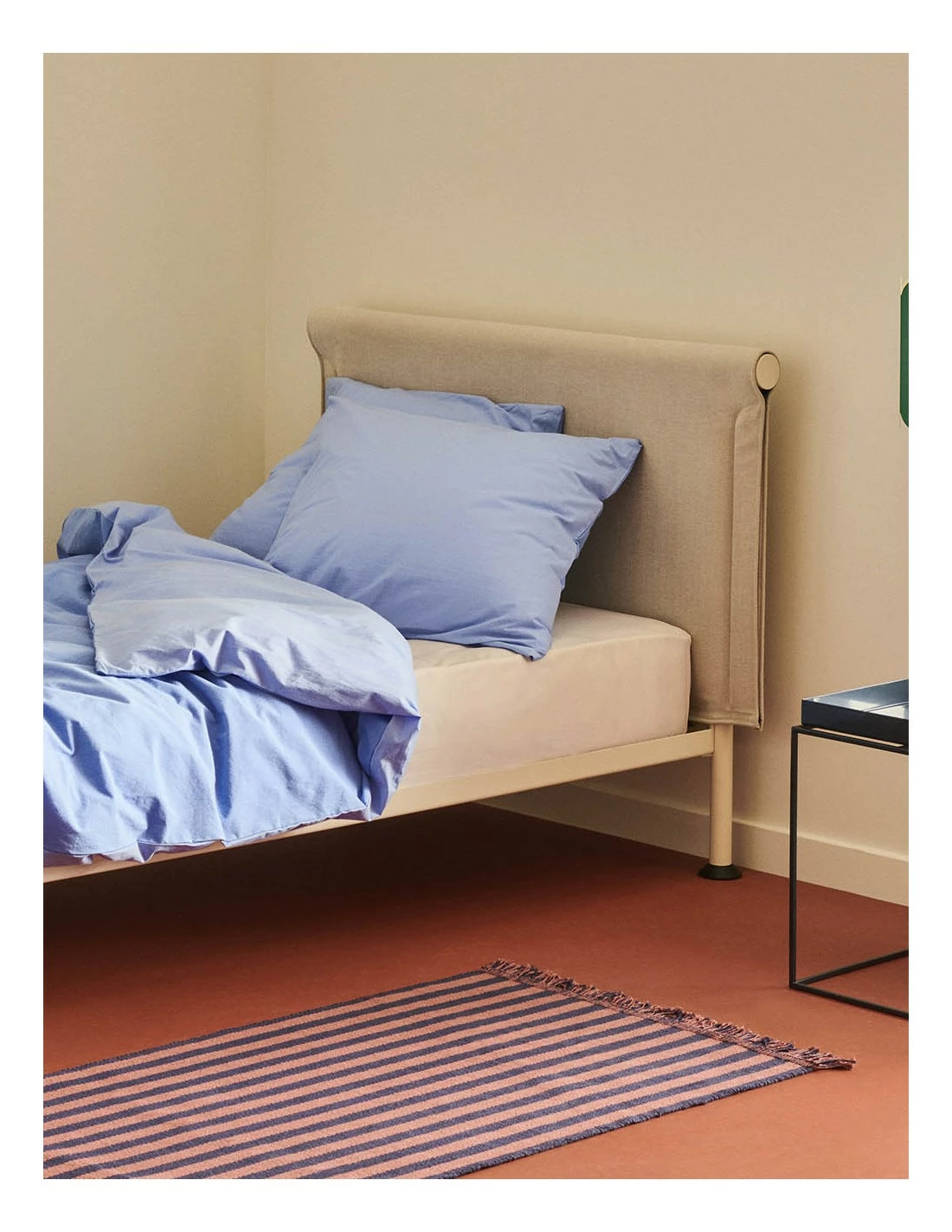 Tamoto está influenciada por la caida de las mangas del kimono, que inspiró el uso innovador que Shane hace de la tela, plegándola sobre el marco de la cama.