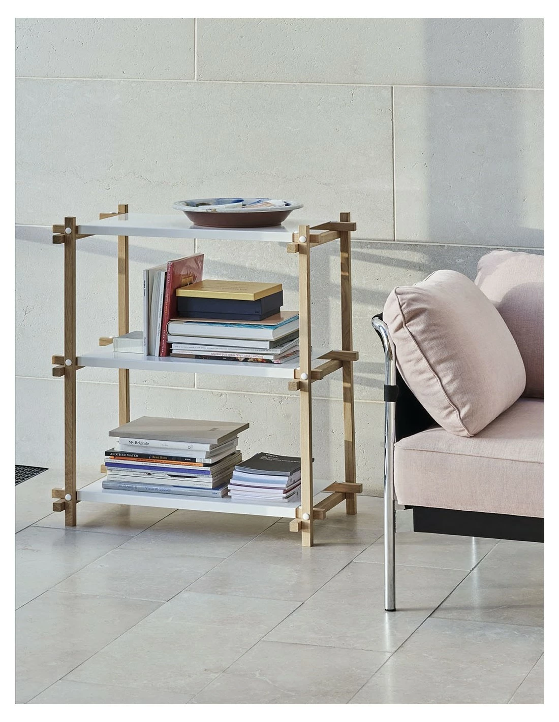 Woody es una estantería de roble y acero de HAY de estilo industrial de gran capacidad y resistencia.