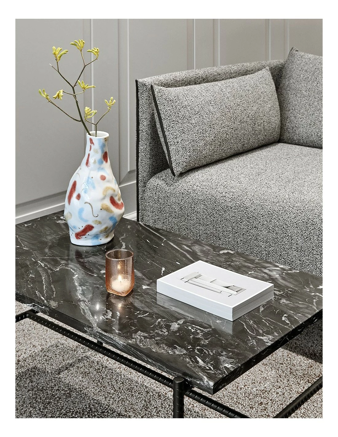 Mesa de centro de HAY.dk realizada en mármol con estructura de acero reforzado
