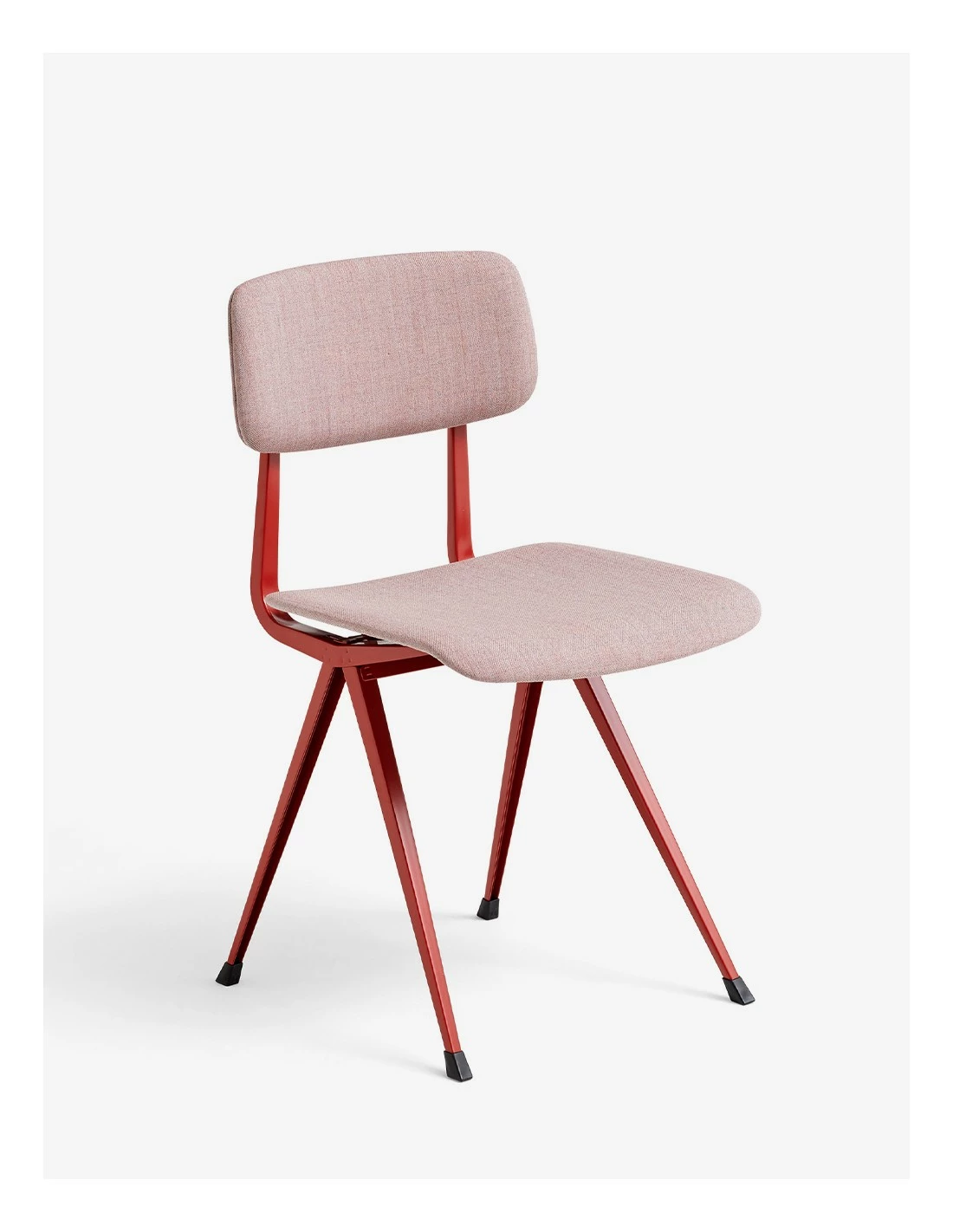 La silla Result con base de chapa de acero con asiento y respaldo de roble, conserva flexibilidad, ligereza y resistencia, manteniendo el diseño minimalista.