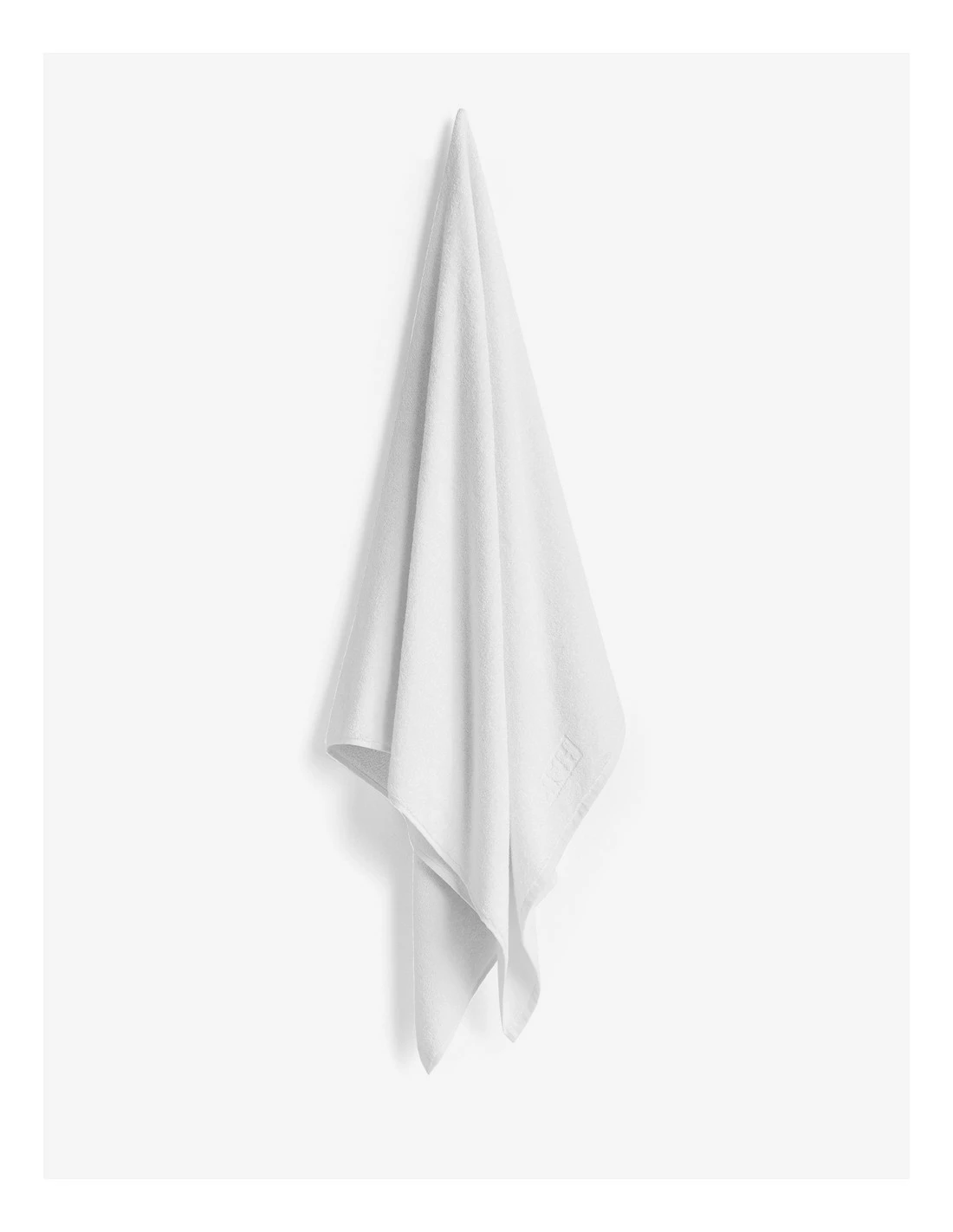 Confeccionada en algodón OEKO-TEX con una textura frotté, la serie Mono, es una gama de toallas de baño de diseño clásico y atemporal con el logotipo de HAY.
