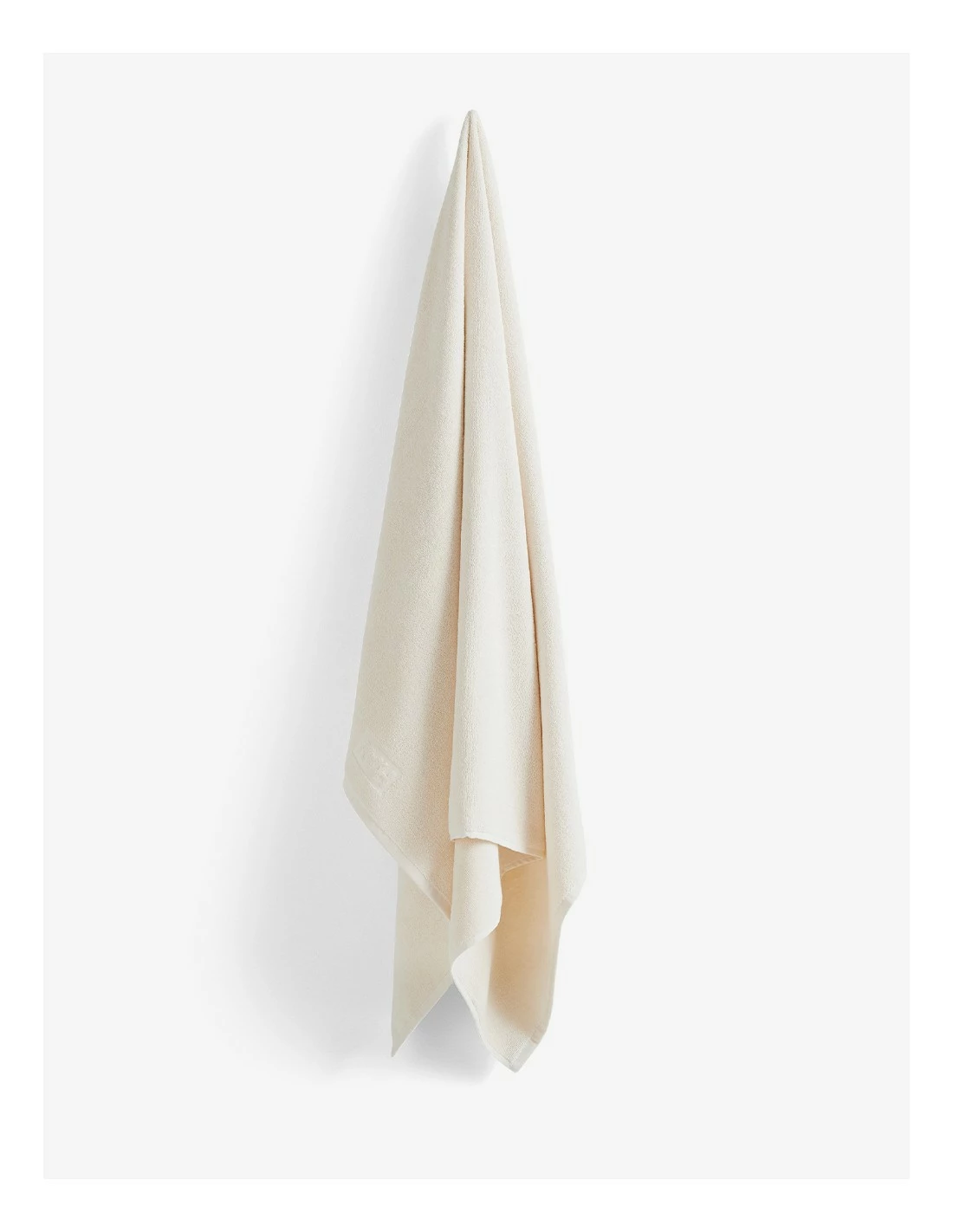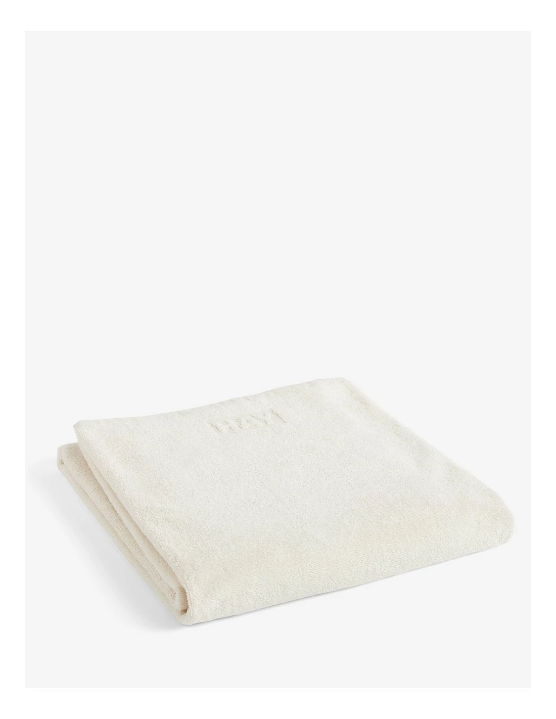 Confeccionada en algodón OEKO-TEX con una textura frotté, la serie Mono, es una gama de toallas de baño de diseño clásico y atemporal con el logotipo de HAY.