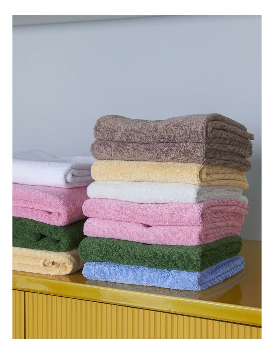 Confeccionada en algodón OEKO-TEX con una textura frotté, la serie Mono, es una gama de toallas de baño de diseño clásico y atemporal con el logotipo de HAY.