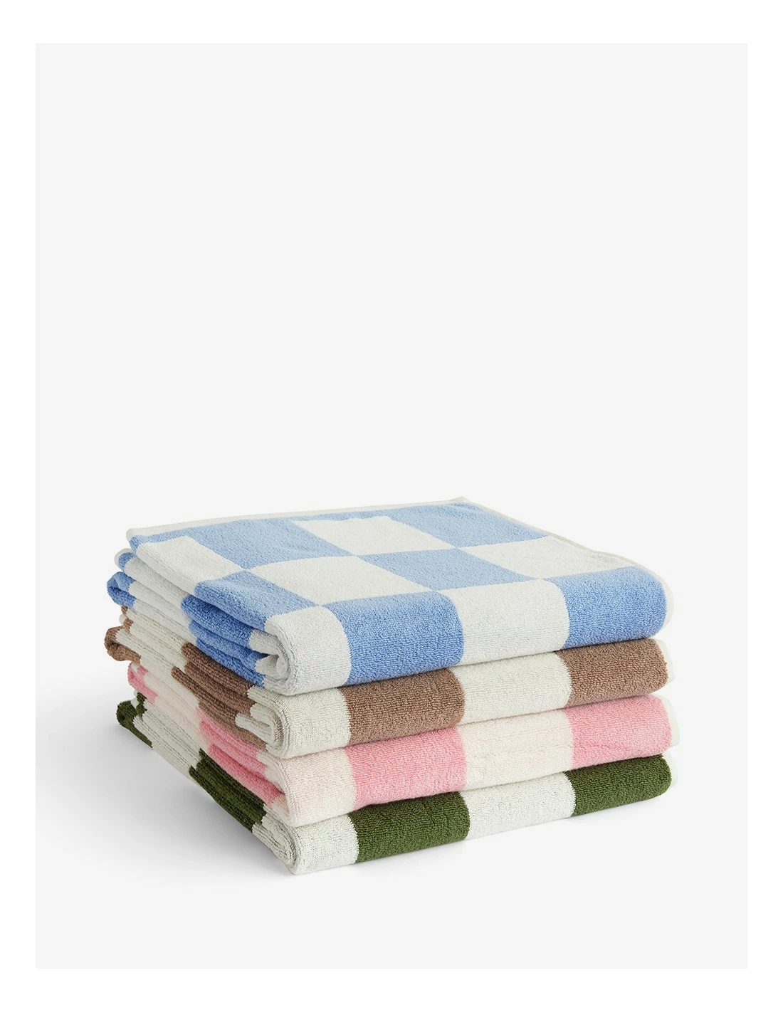 Confeccionada en algodón OEKO-TEX con una textura frotté, la serie Check, es una gama de artículos para el baño que presenta un colorido diseño a cuadros.