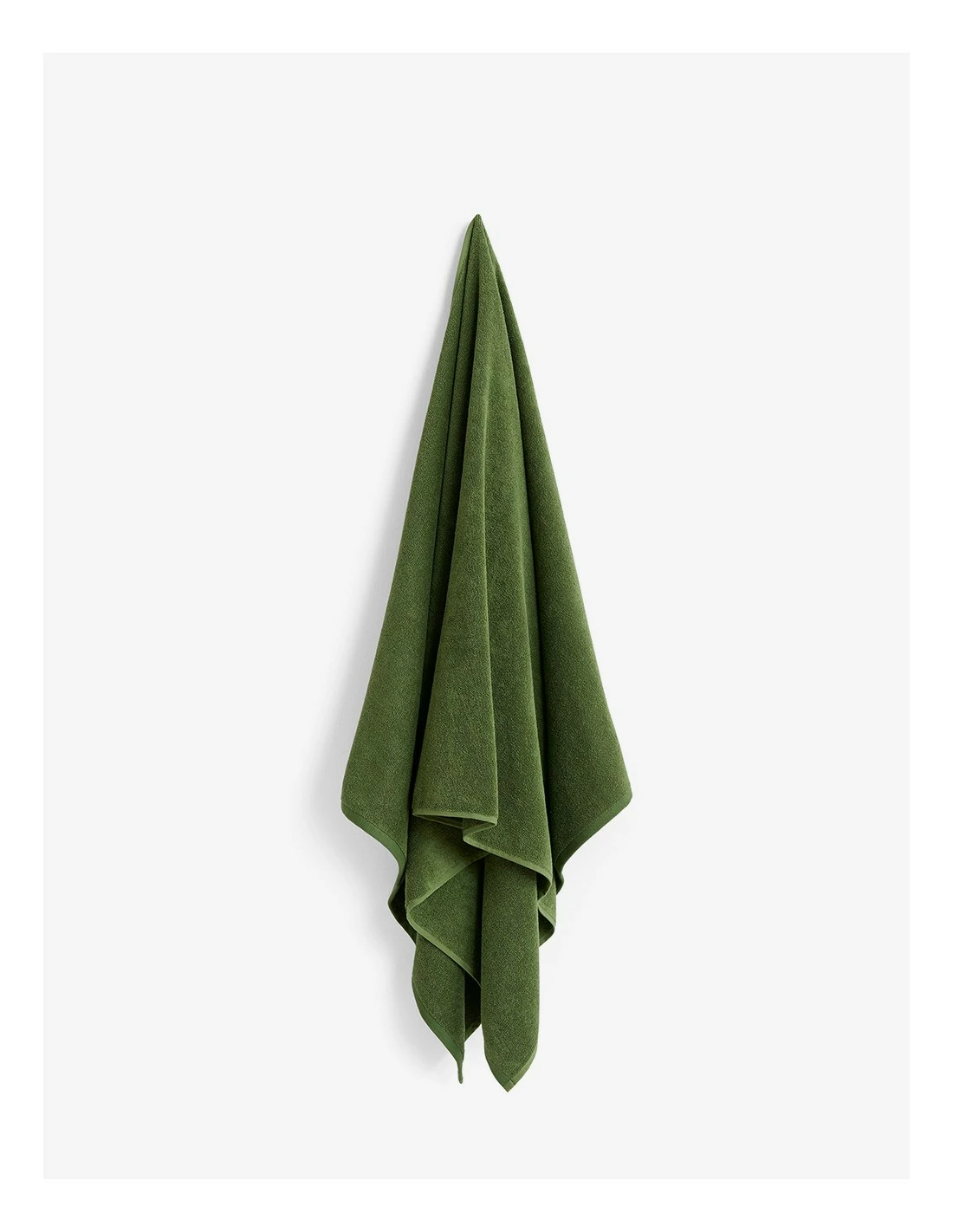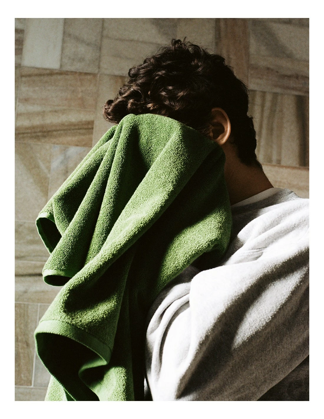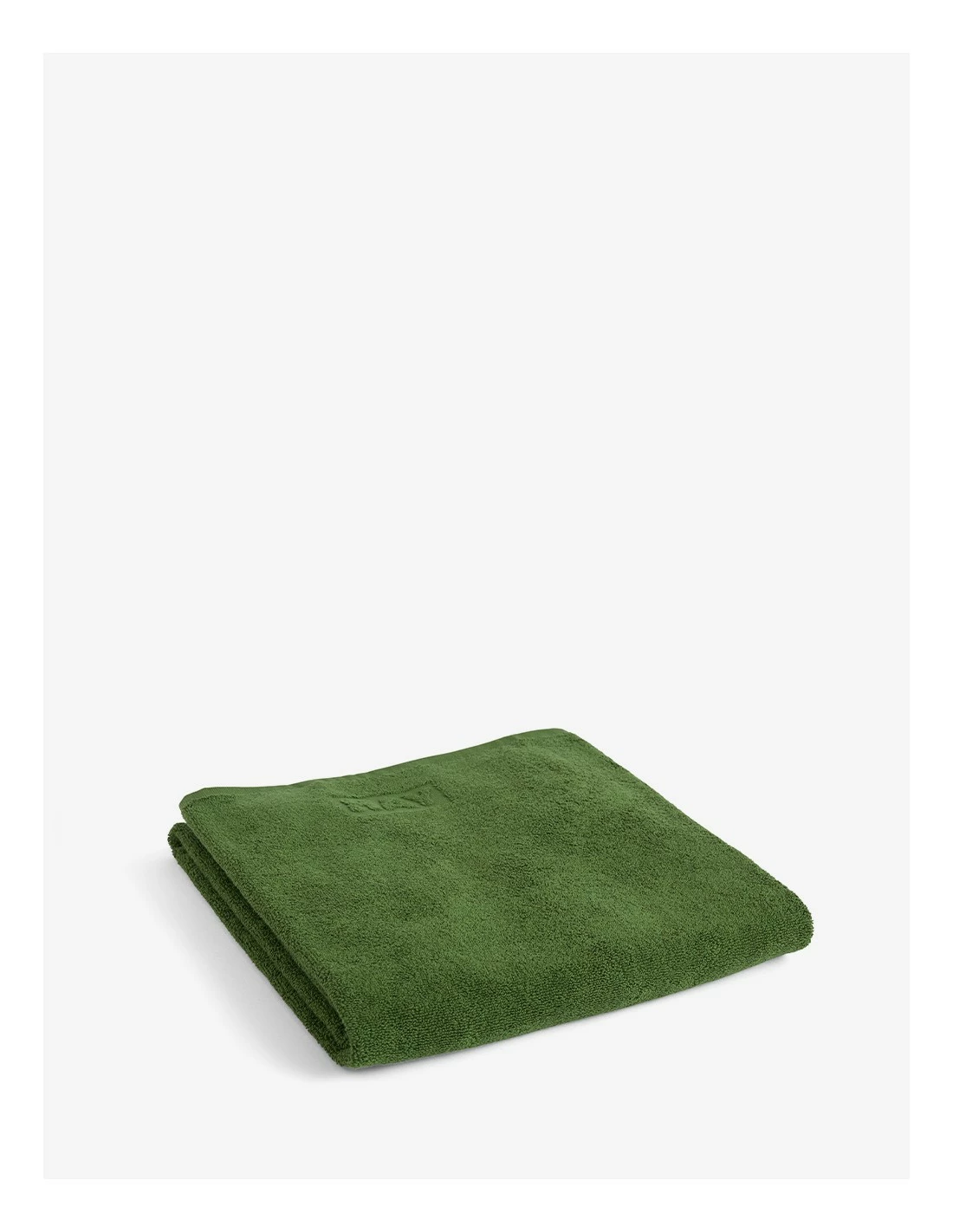 Confeccionada en algodón OEKO-TEX con una textura frotté, la serie Mono, es una gama de toallas de baño de diseño clásico y atemporal con el logotipo de HAY.