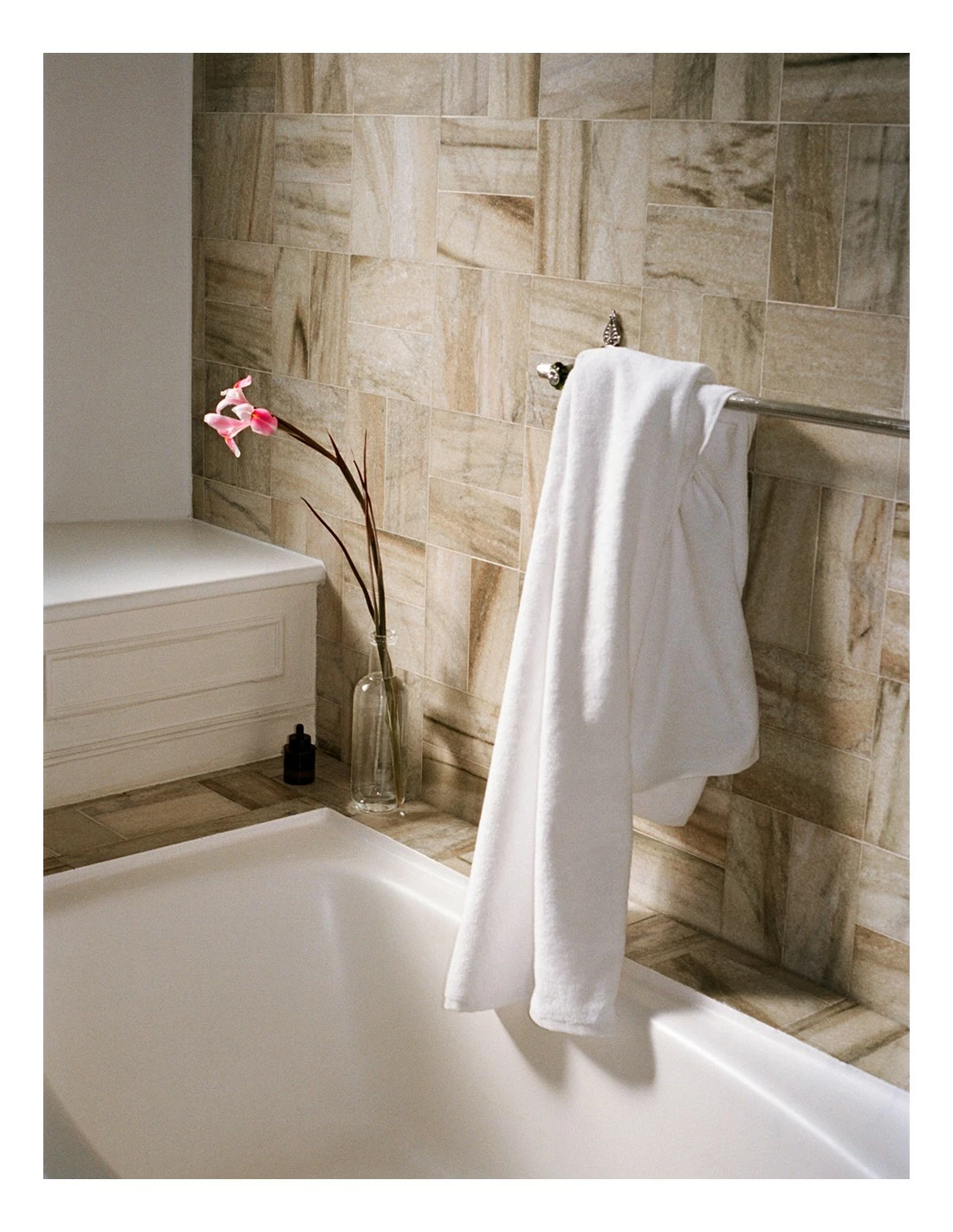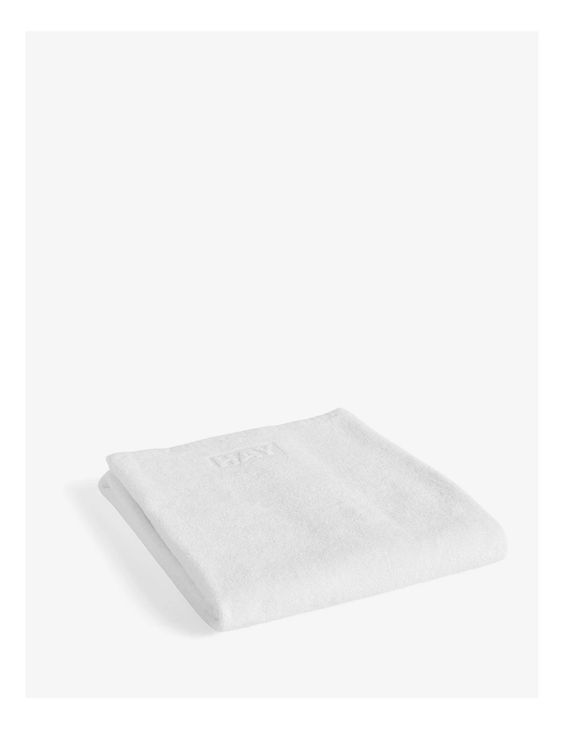 Confeccionada en algodón OEKO-TEX con una textura frotté, la serie Mono, es una gama de toallas de baño de diseño clásico y atemporal con el logotipo de HAY.