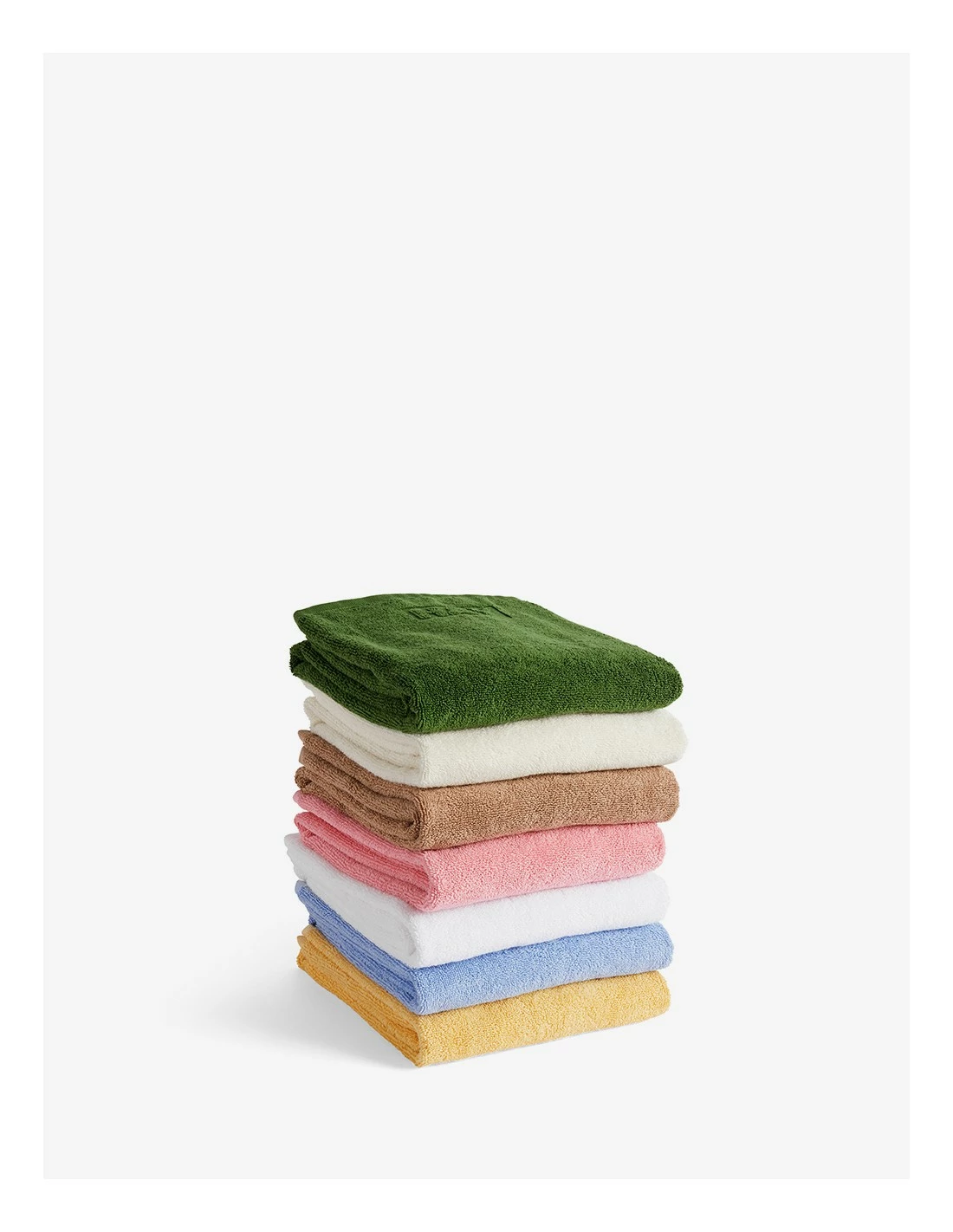 Confeccionada en algodón OEKO-TEX con una textura frotté, la serie Mono, es una gama de toallas de baño de diseño clásico y atemporal con el logotipo de HAY.