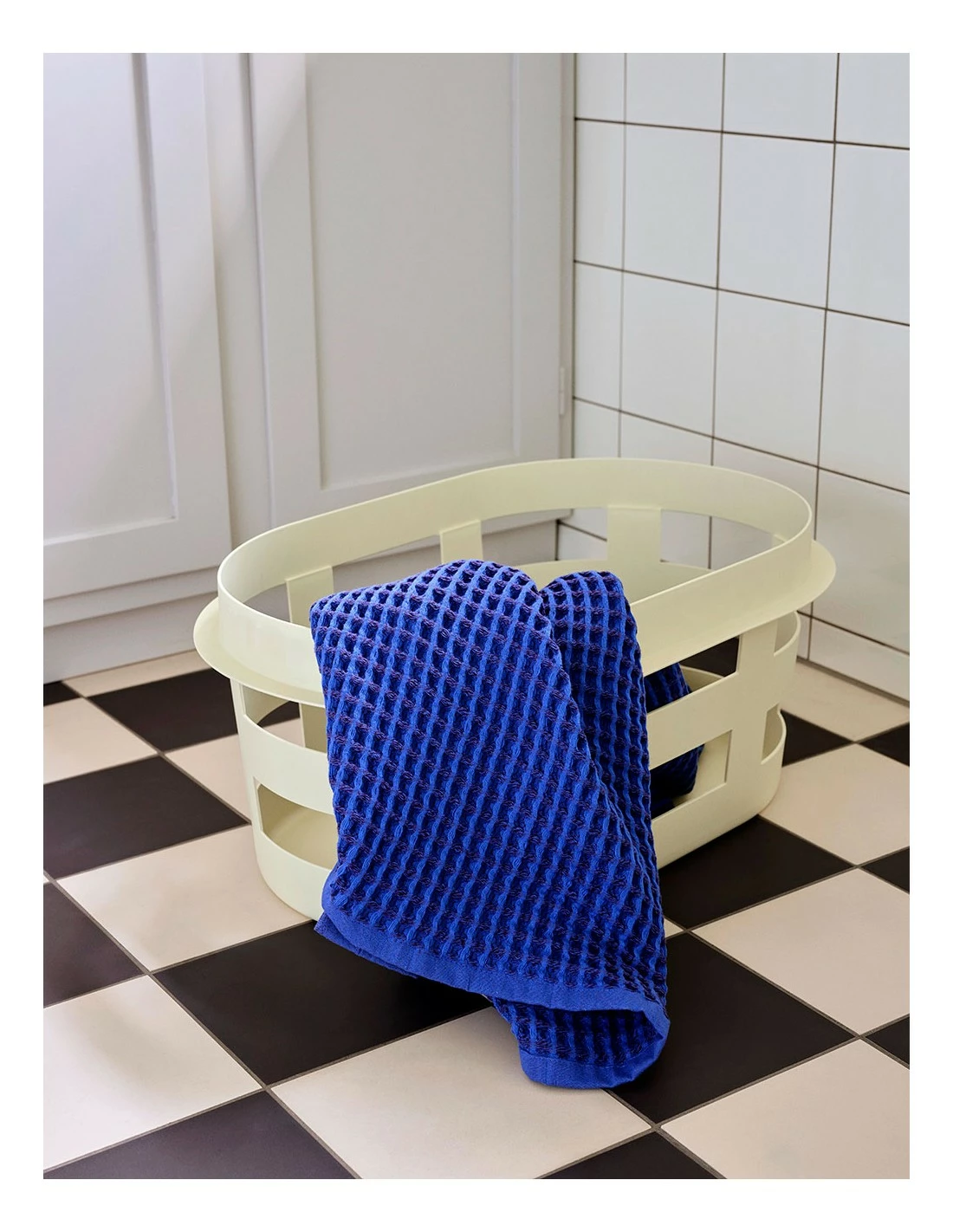 Confeccionada en algodón OEKO-TEX con una textura frotté, la serie Waffle, es una gama de toallas de baño de diseño clásico y atemporal con el logotipo de HAY.
