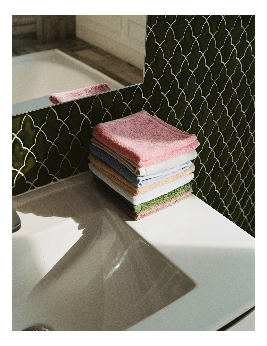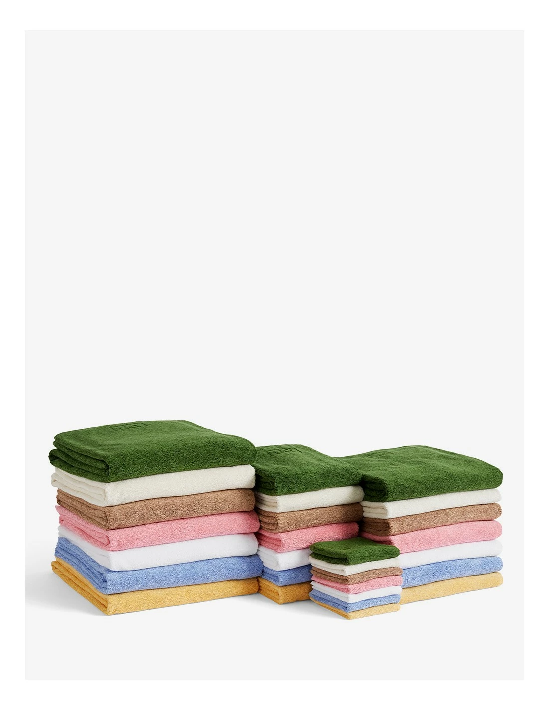 Confeccionada en algodón OEKO-TEX con una textura frotté, la serie Mono, es una gama de toallas de baño de diseño clásico y atemporal con el logotipo de HAY.