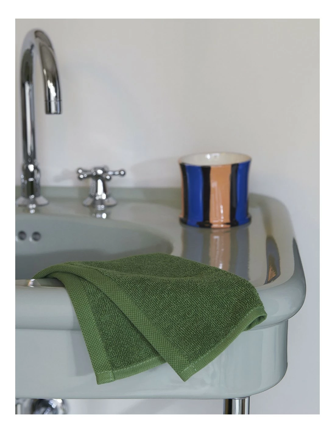 Confeccionada en algodón OEKO-TEX con una textura frotté, la serie Mono, es una gama de toallas de baño de diseño clásico y atemporal con el logotipo de HAY.