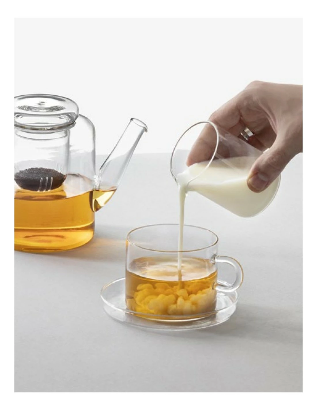 El diseño de Piuma mezcla la pureza del cristal, y las formas cuidadas, dando como resultado un conjunto de teteras, tazas y utensilios simplemente elegantes