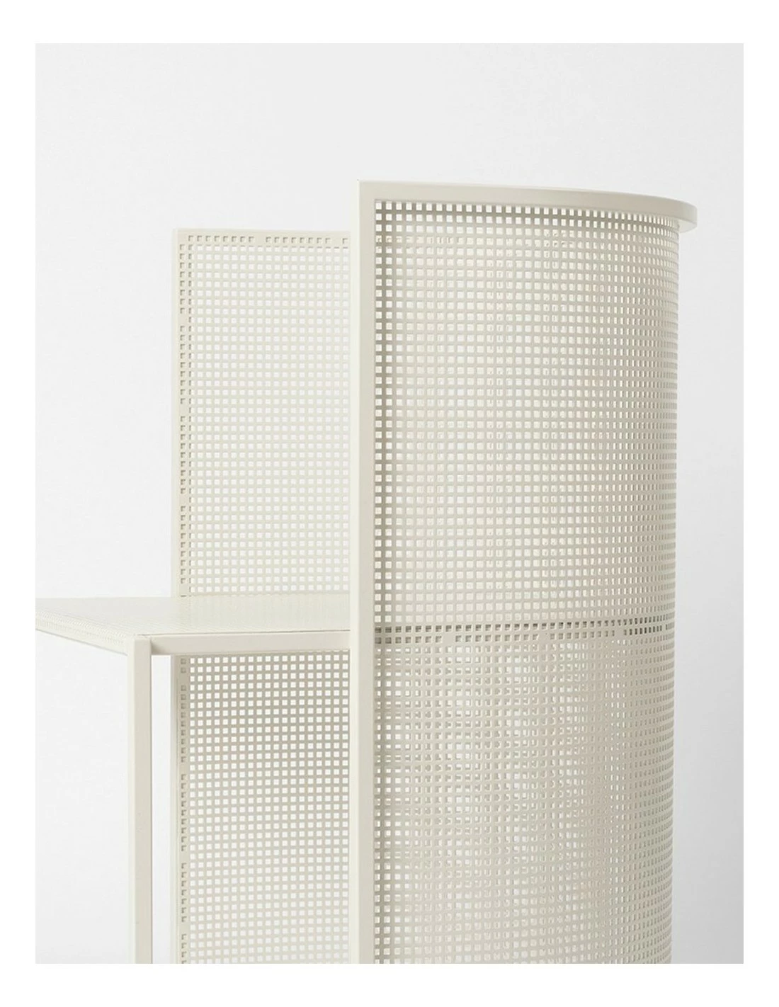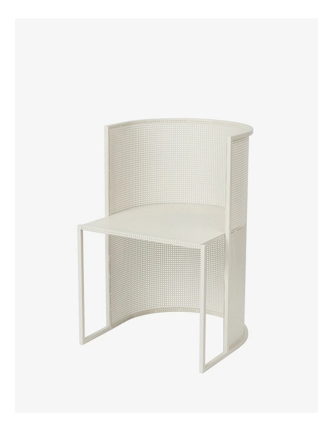 Silla de estilo minimalista realizada en acero perforado apta para su uso en exterior.