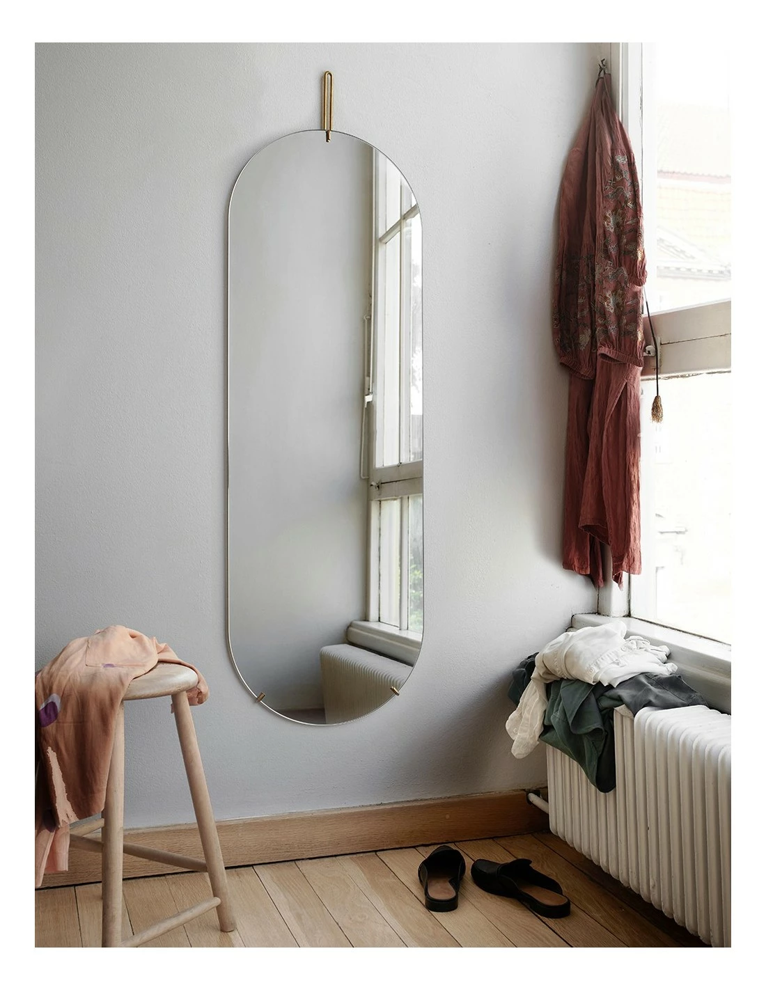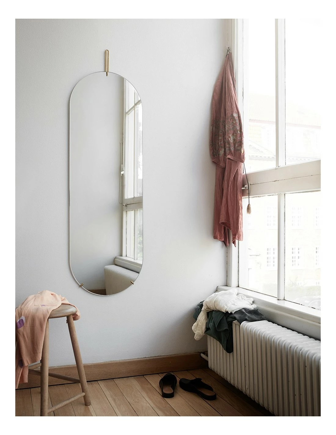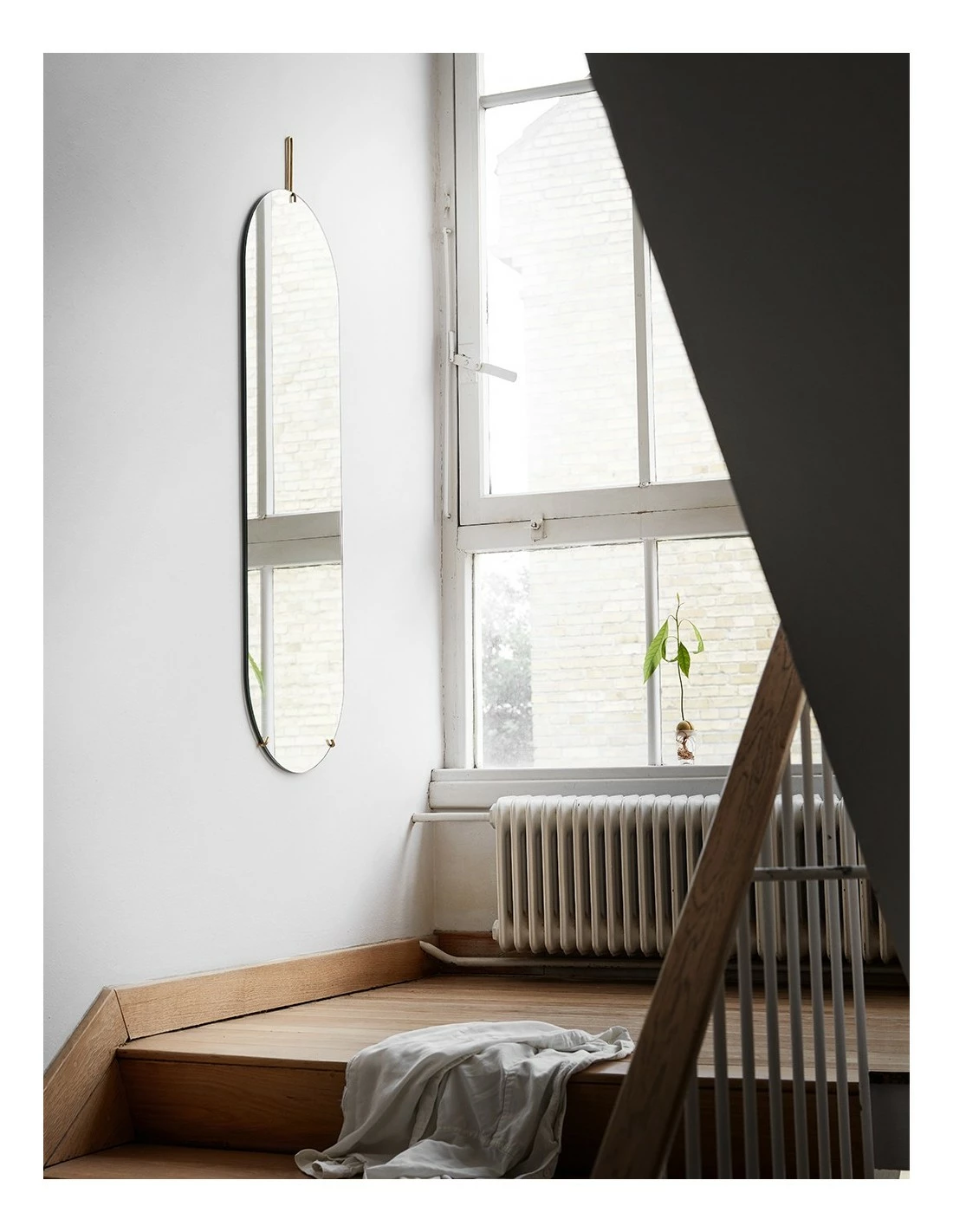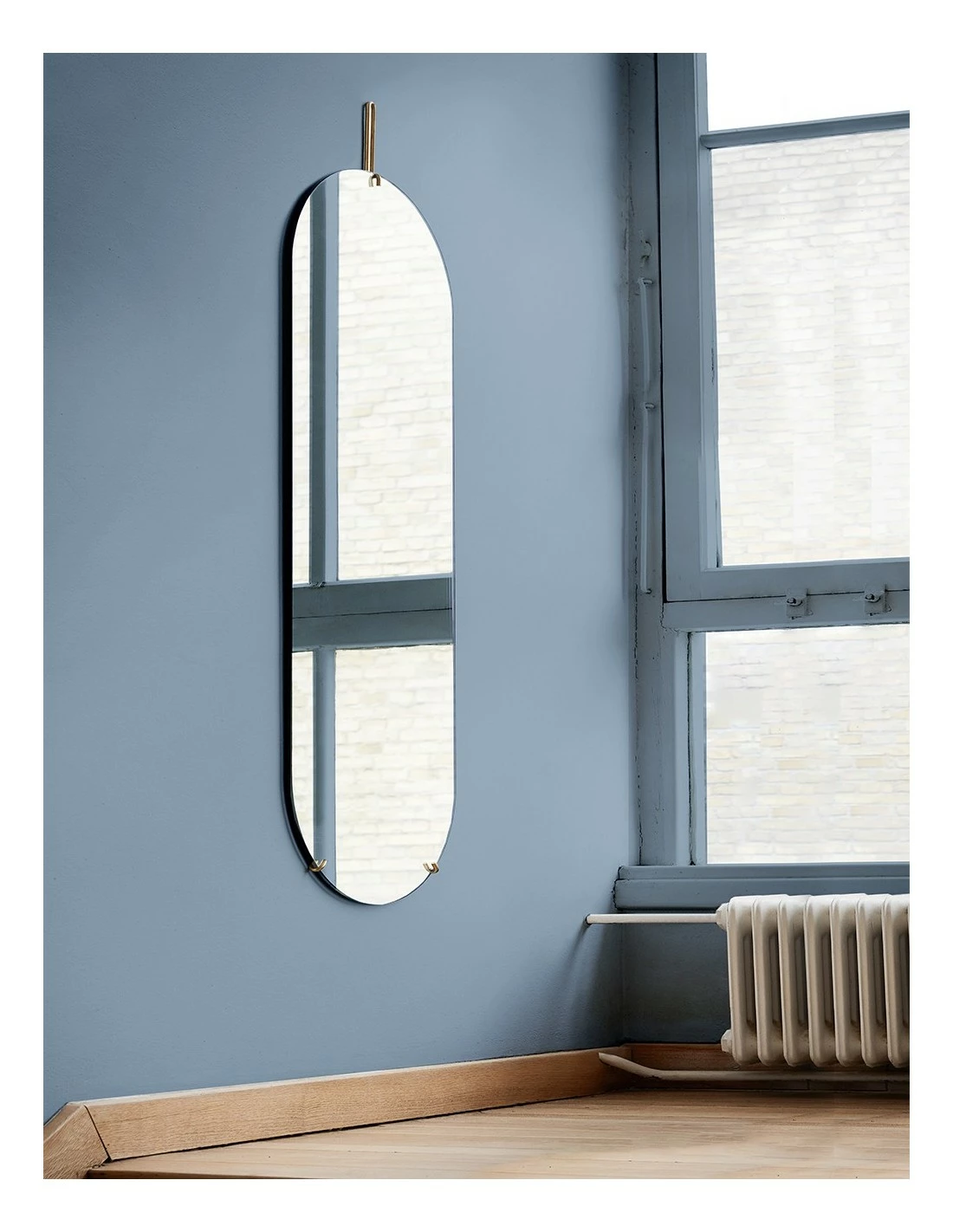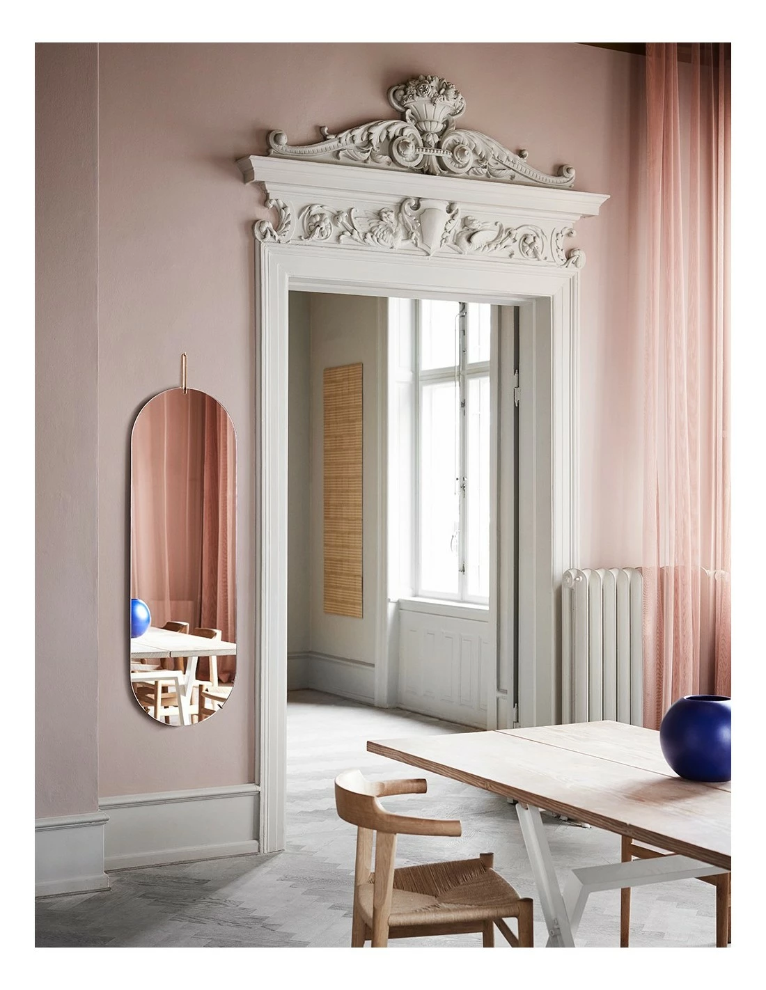 La dureza del metal y la delicadeza del cristal juegan con esta composición de la esfera de espejo y una estructura metálica súper ligera que sujeta todo.