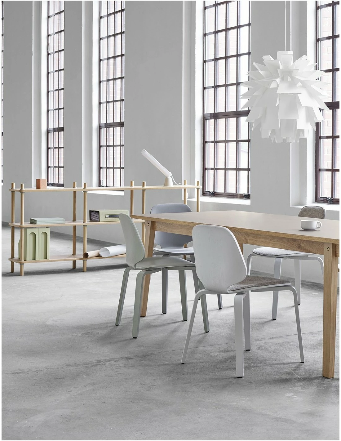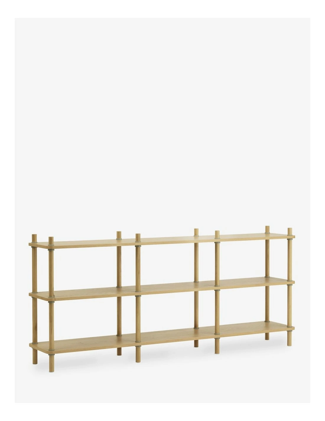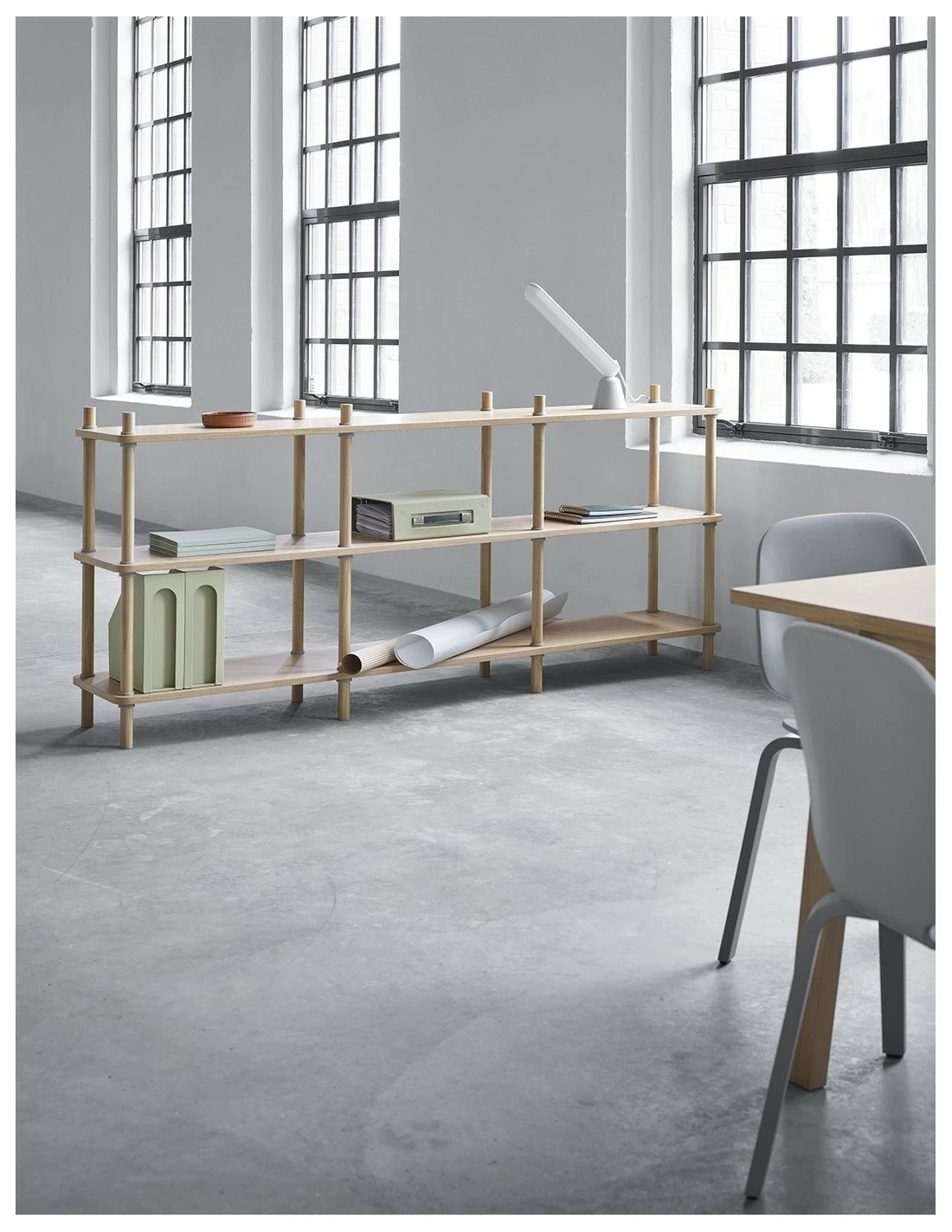 Jam es una estantería de roble de Normann Copenhagen ensamblada sin el uso de puntas o tornillos gracias a cuñas de polipropileno.