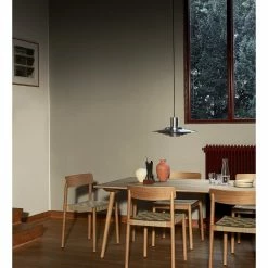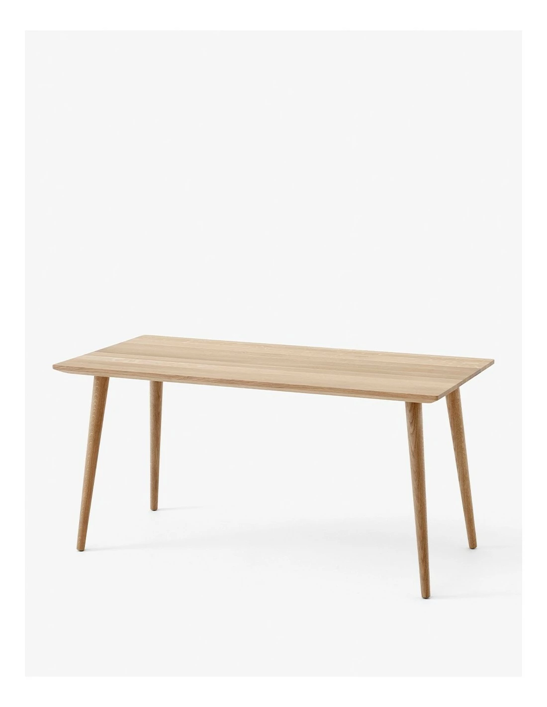 Las patas de esta mesa se realizan a partir de madera maciza de roble mientras que su tablero se realiza con un resistente núcleo de MDF terminado en roble.