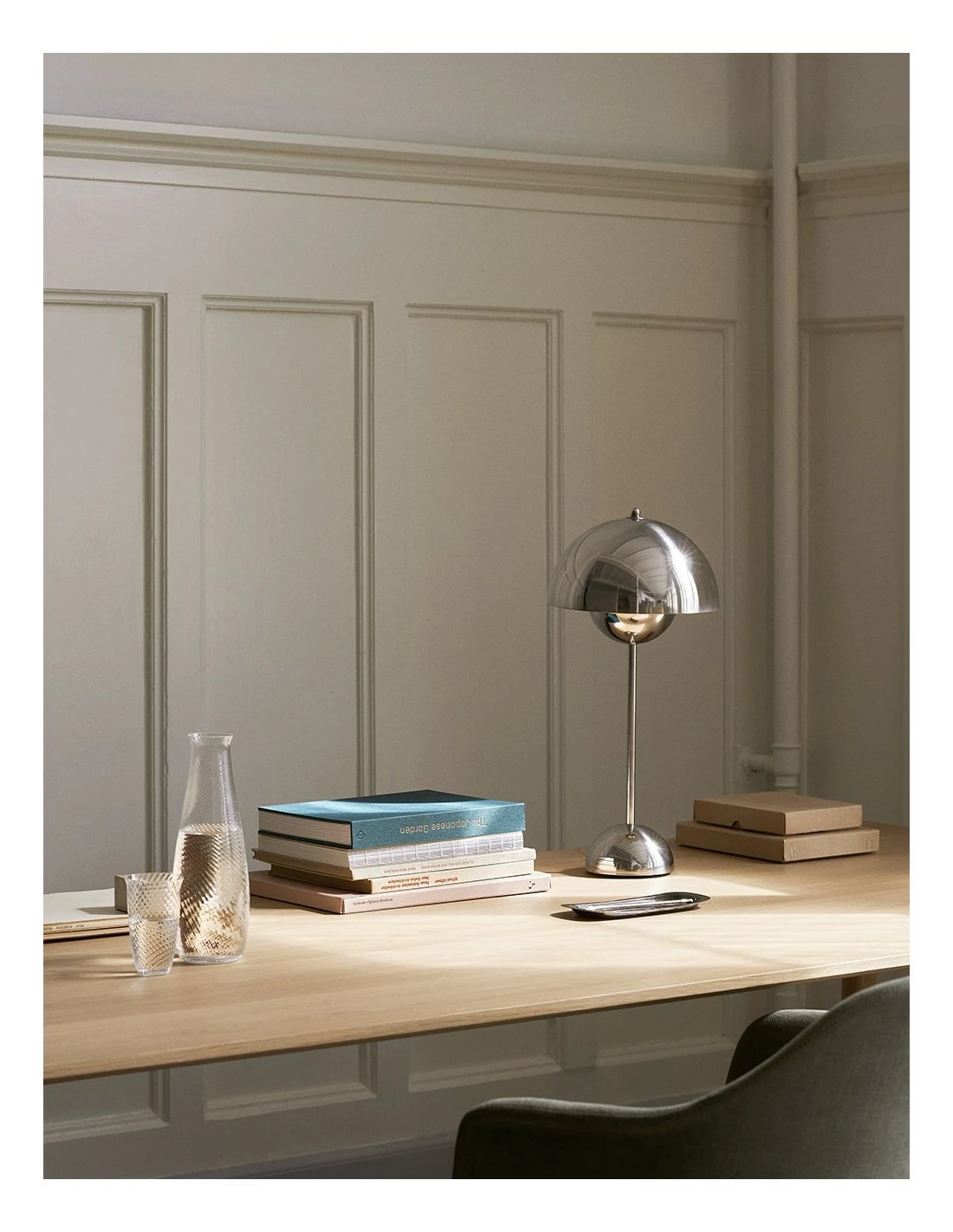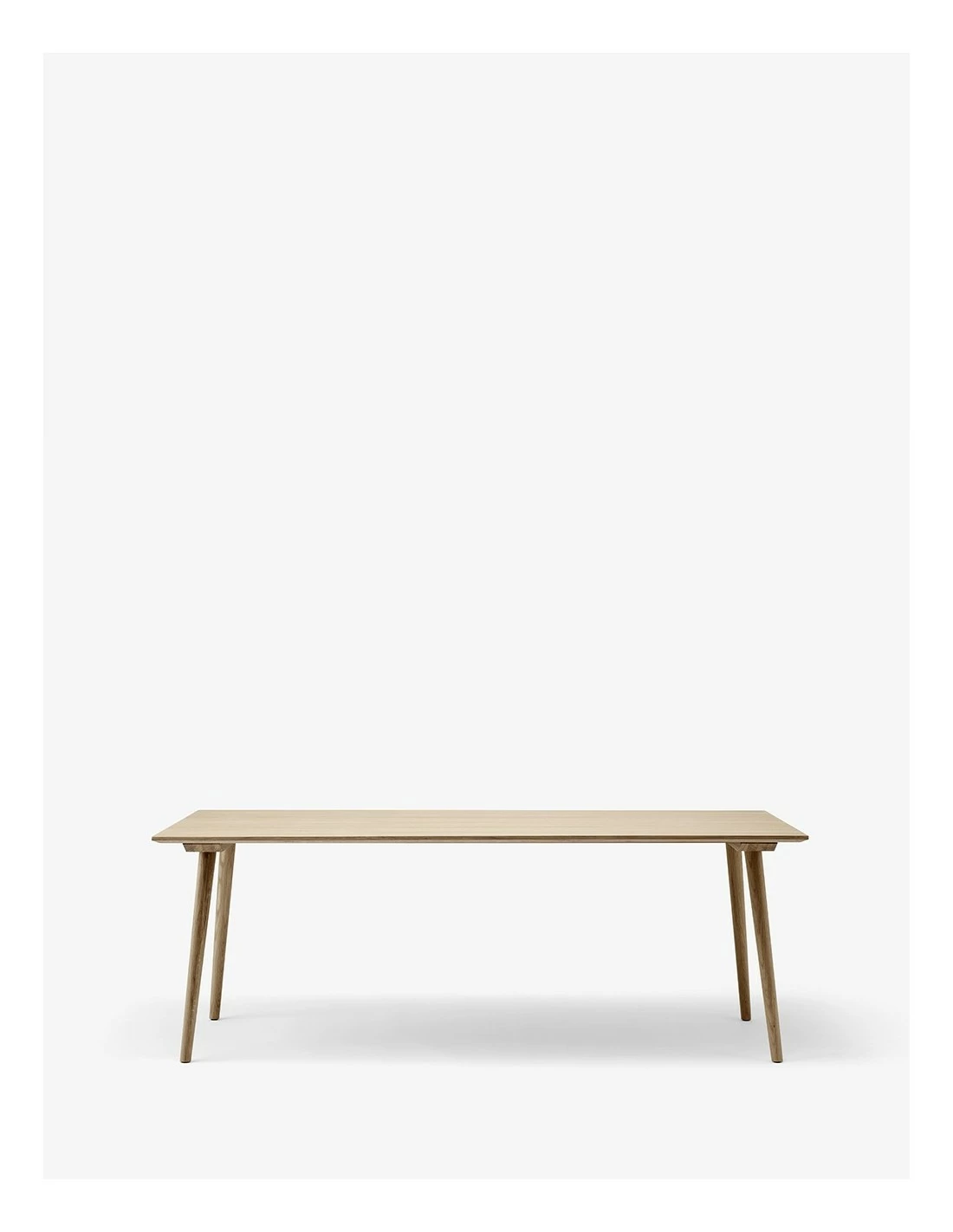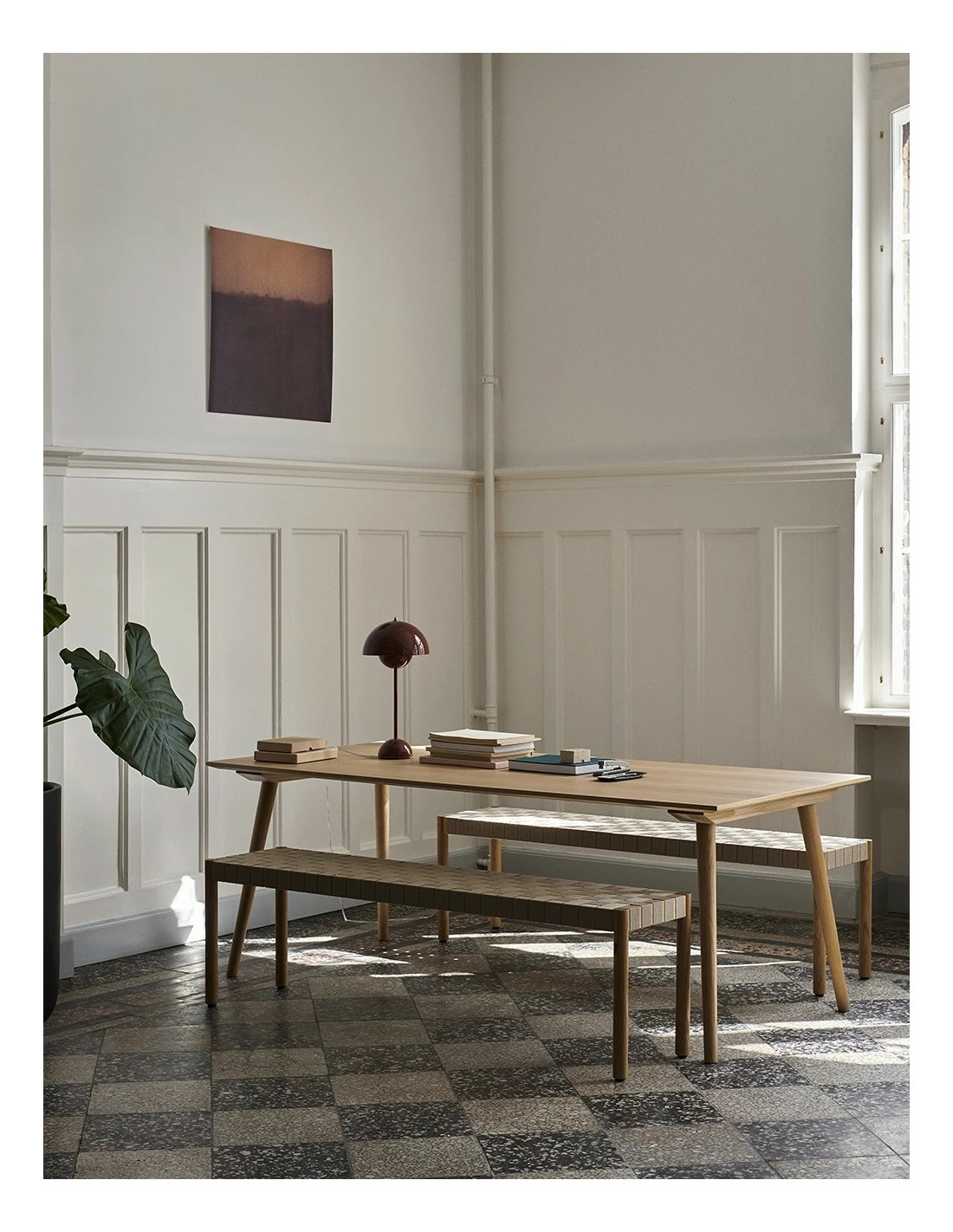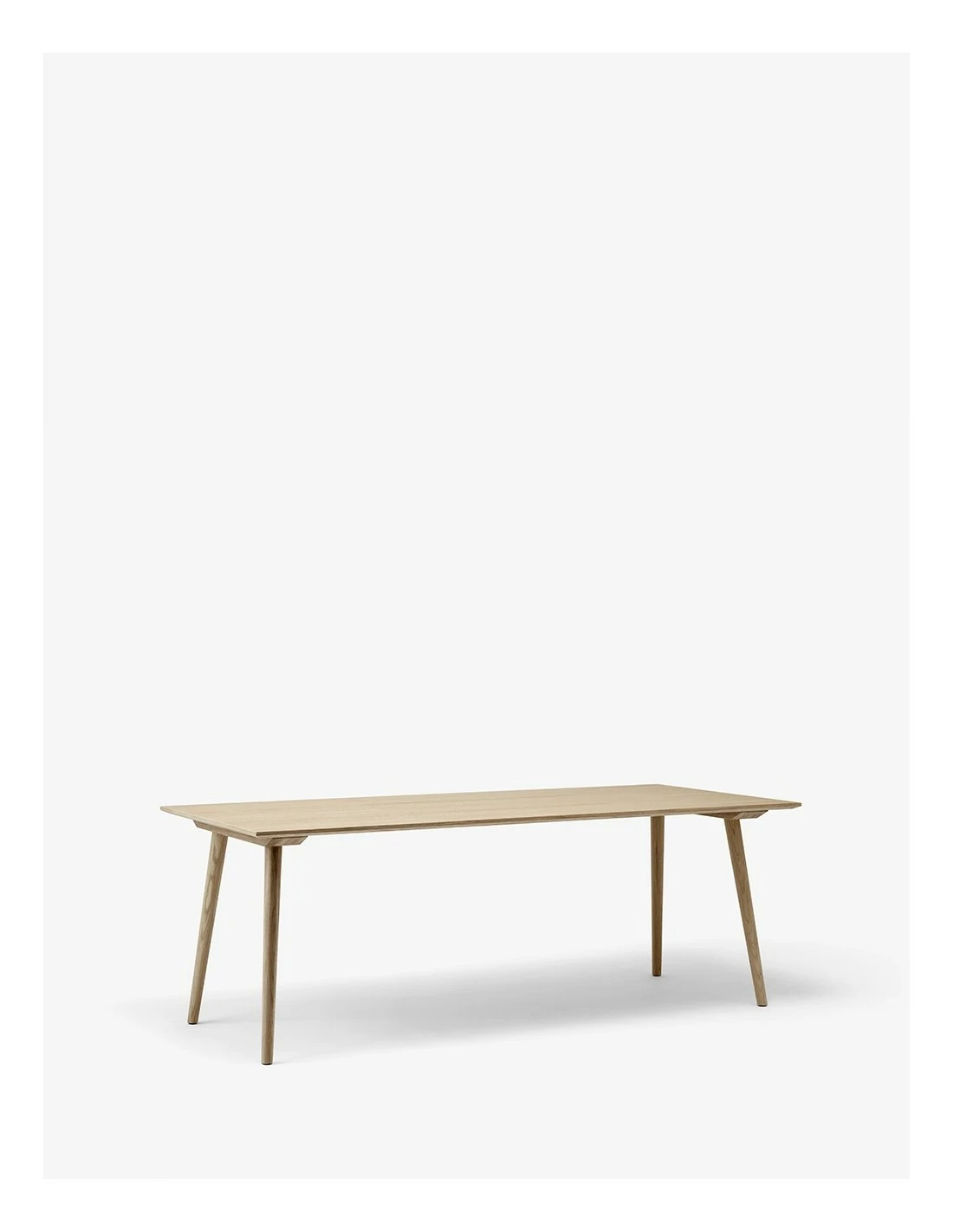 Las patas de esta mesa se realizan a partir de madera maciza de roble mientras que su tablero se realiza con un resistente núcleo de MDF terminado en roble.