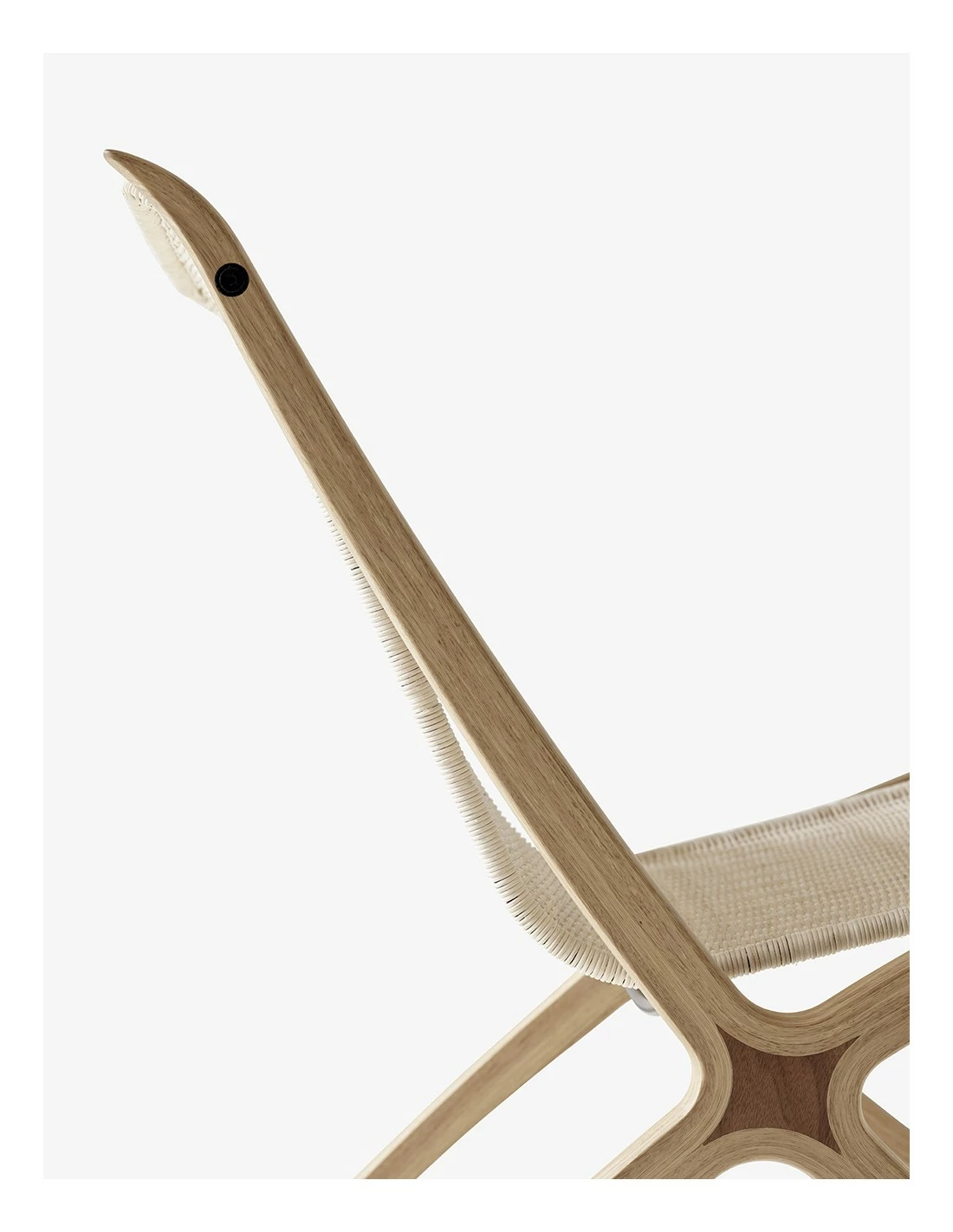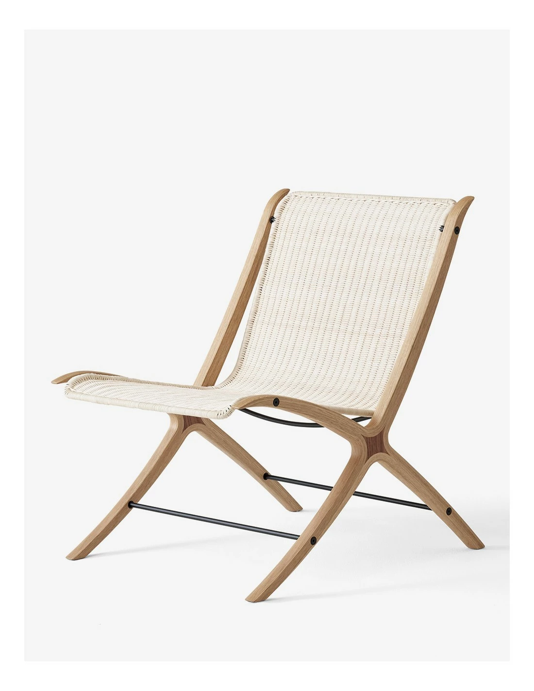 Después de experimentar con el concepto de un marco de madera inspirado en las raquetas de tenis de madera, el dúo Hvidt & Mølgaard lanzó X en 1959